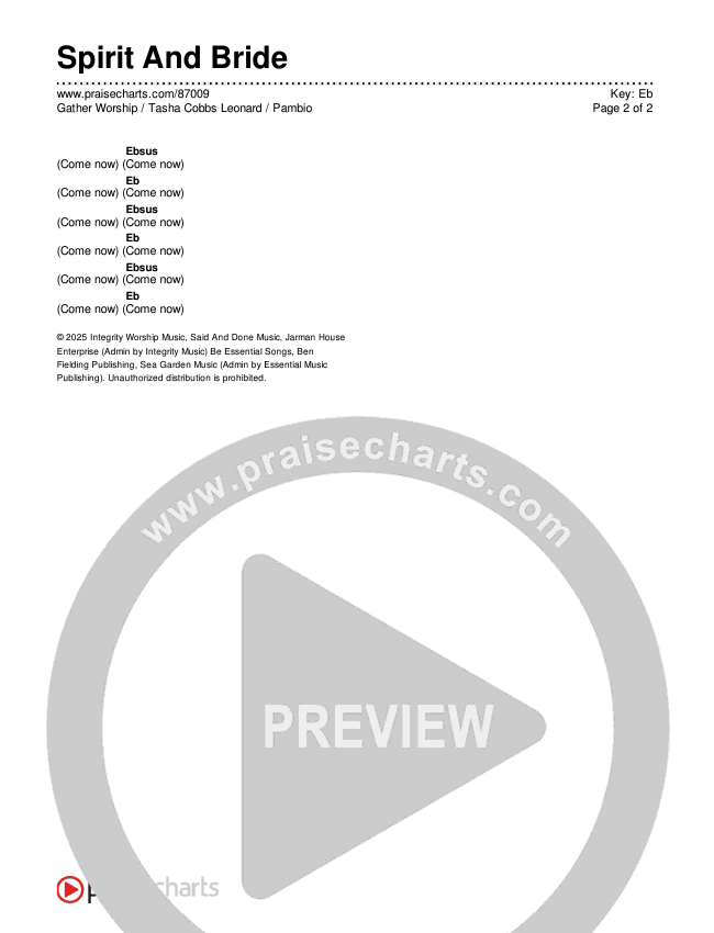 Spirit And Bride Chords PDF (Gather Worship / Tasha Cobbs Leonard / Pambio)