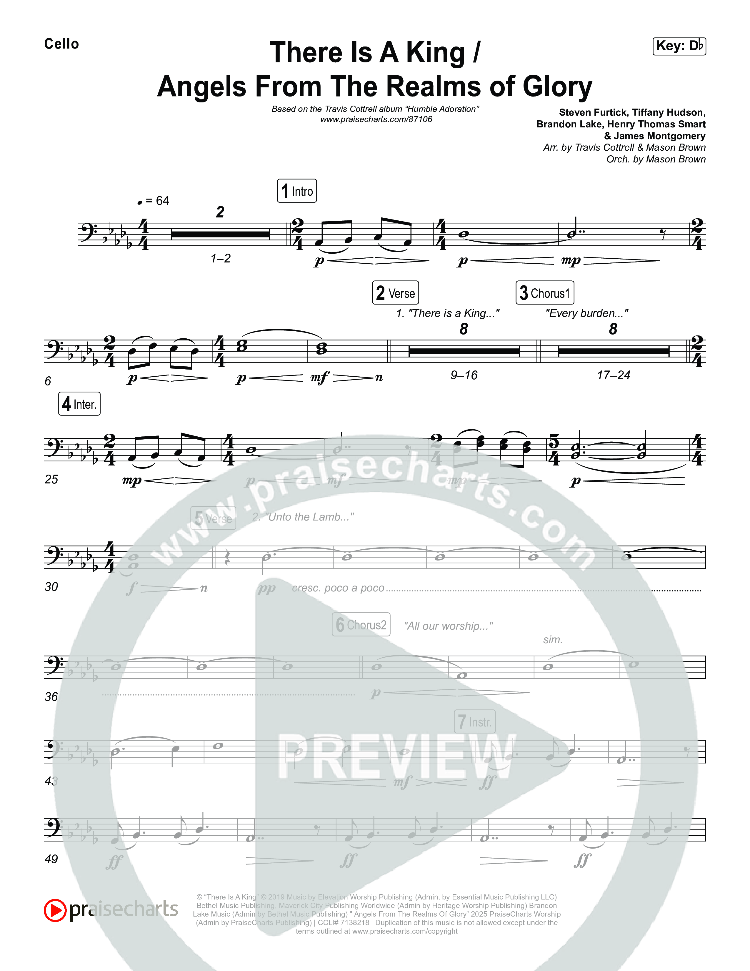 Download the Cello sheet music for There Is A King / Angels From The Realms Of Glory (Choral/SATB) by Travis Cottrell / Arr. Mason Brown, from the album Humble Adoration. This song was arranged by Travis Cottrell / Mason Brown in the key of Db.