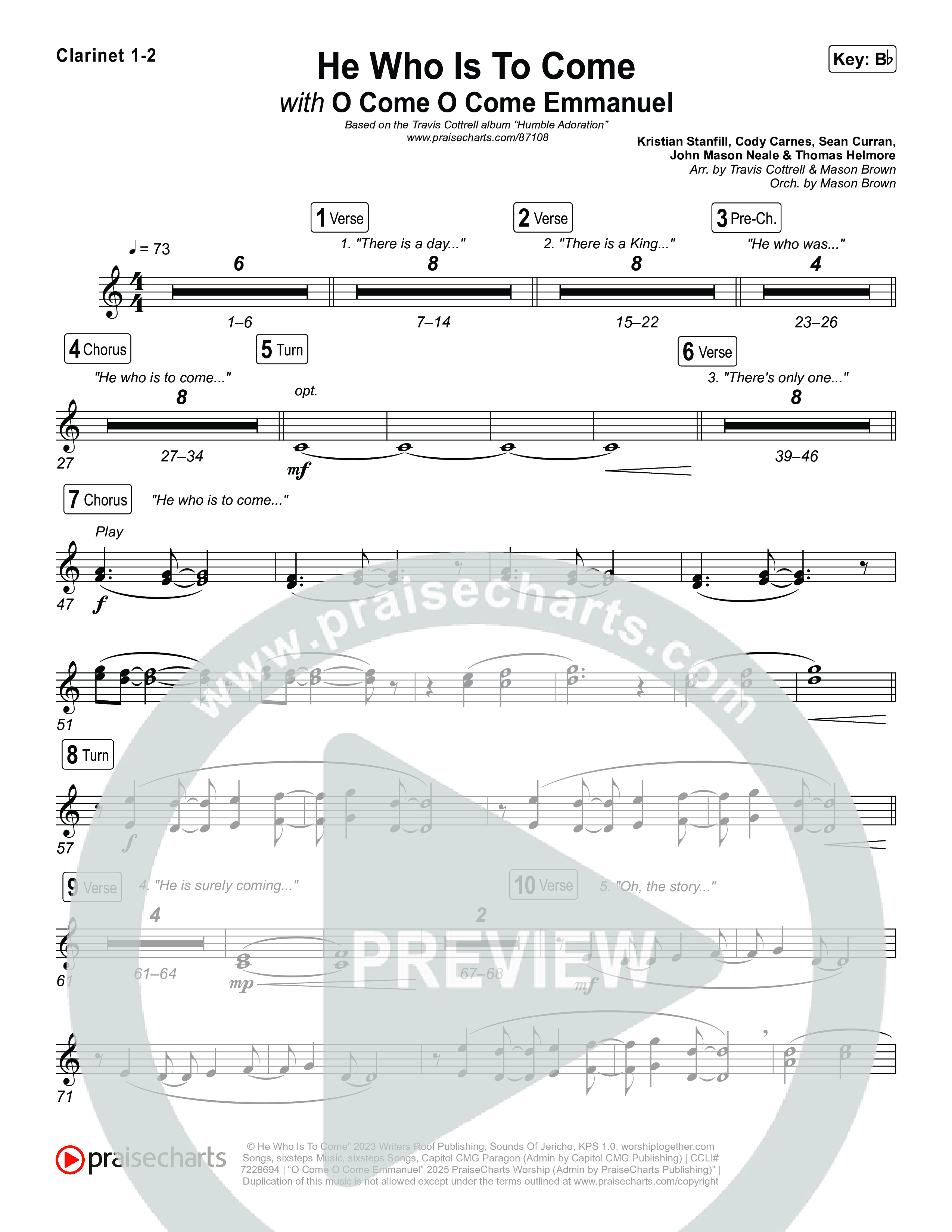 Download the Clarinet sheet music for He Who Is To Come / O Come O Come Emmanuel (Choral/SATB) by Travis Cottrell / Brooke Voland / Arr. Mason Brown, from the album Humble Adoration. This song was arranged by Travis Cottrell / Mason Brown in the key of Bb.