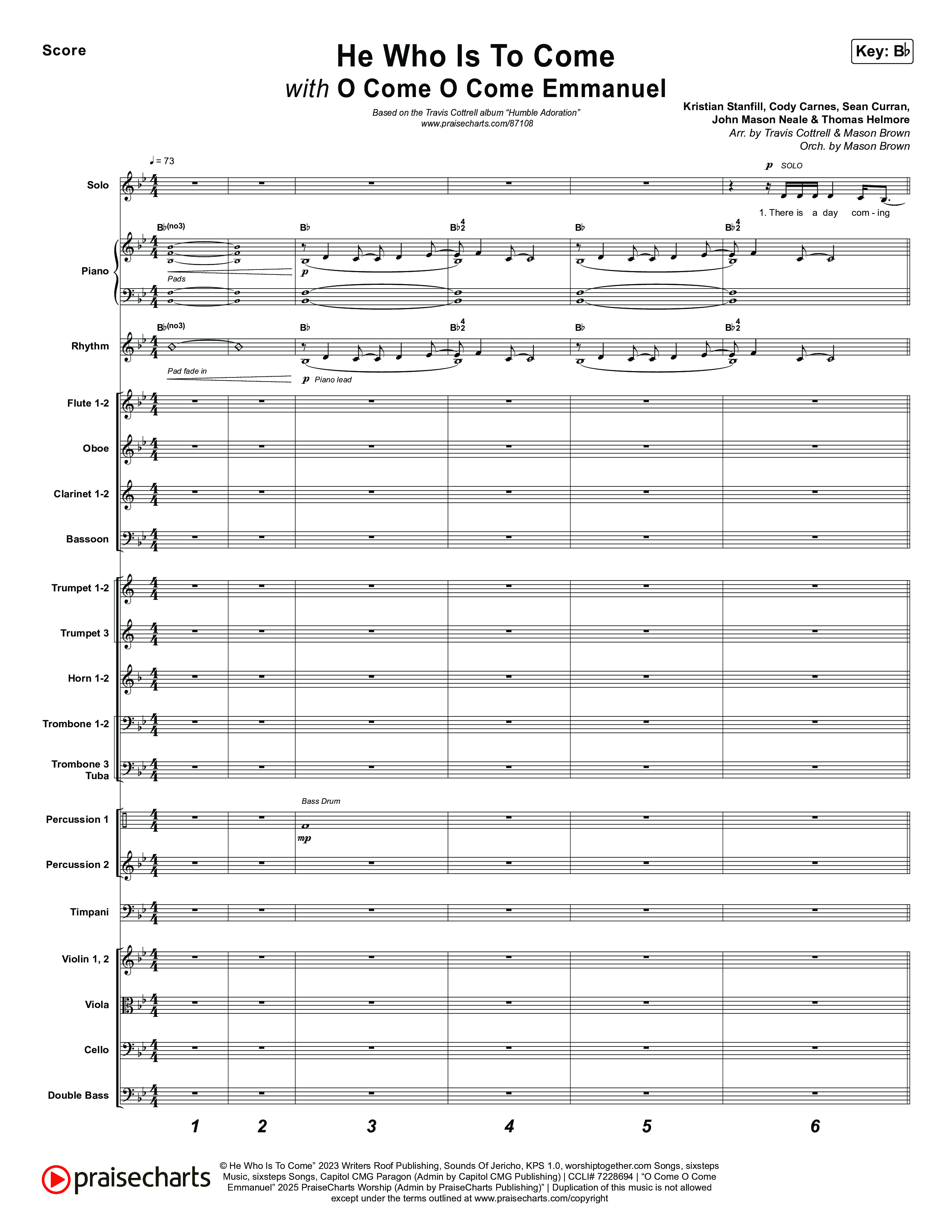 Download the Orchestration for He Who Is To Come / O Come O Come Emmanuel (Choral/SATB) by Travis Cottrell / Brooke Voland / Arr. Mason Brown, from the album Humble Adoration. This song was arranged by Travis Cottrell / Mason Brown in the key of Bb.