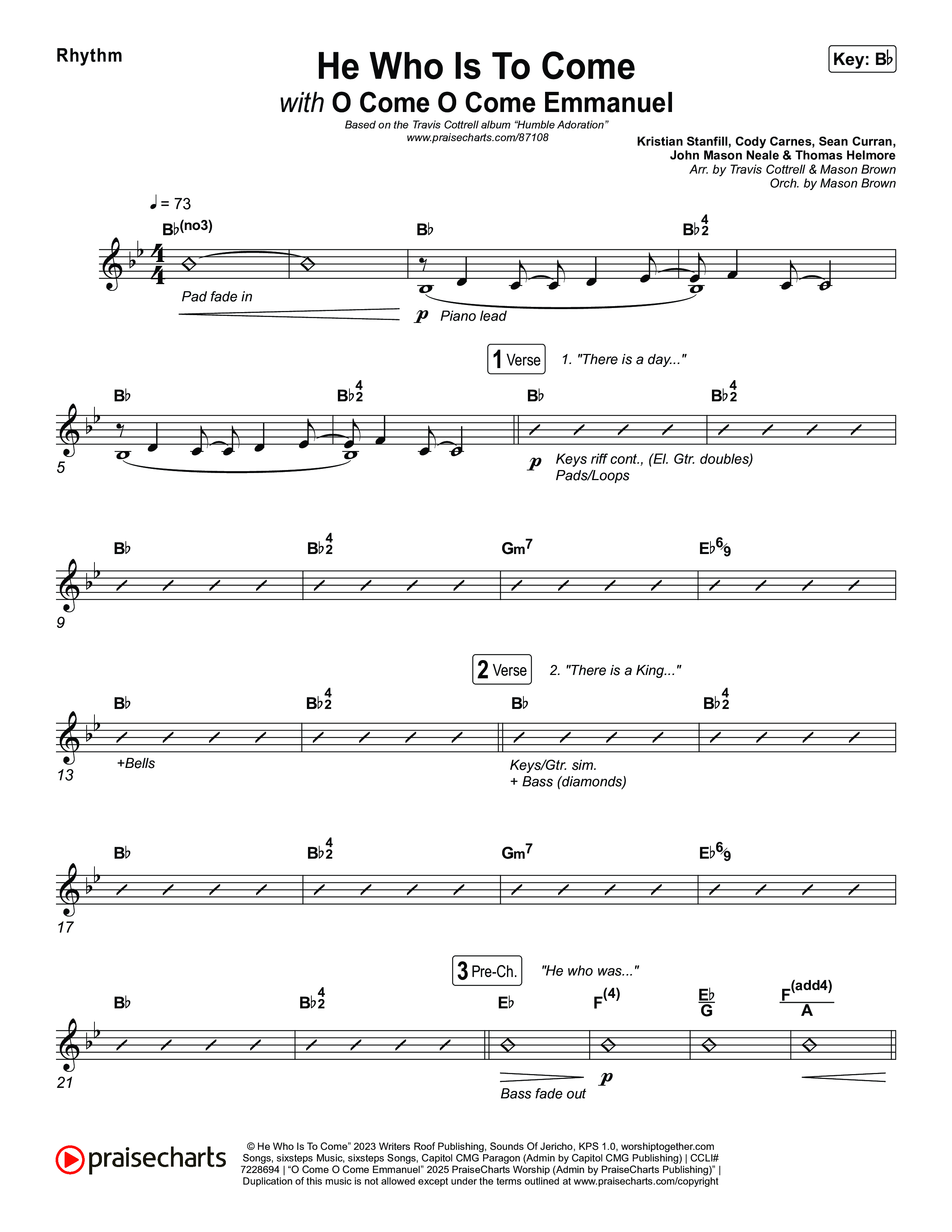 Download the PDF sheet music for He Who Is To Come / O Come O Come Emmanuel (Choral/SATB) by Travis Cottrell / Brooke Voland / Arr. Mason Brown, from the album Humble Adoration. This song was arranged by Travis Cottrell / Mason Brown in the key of Bb.