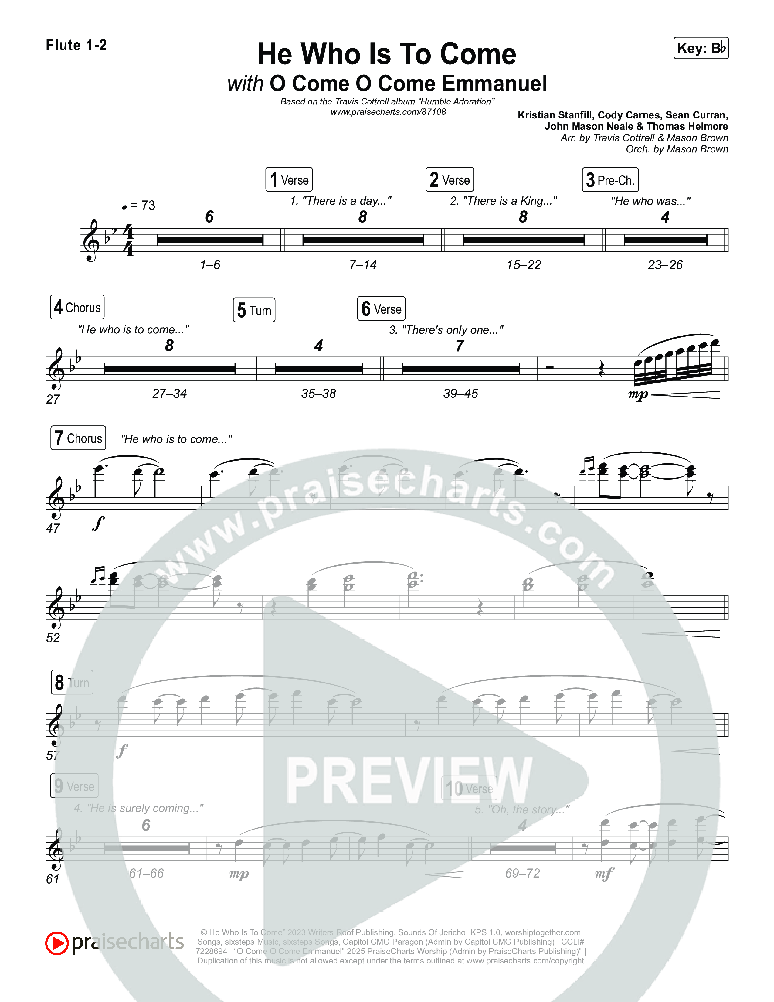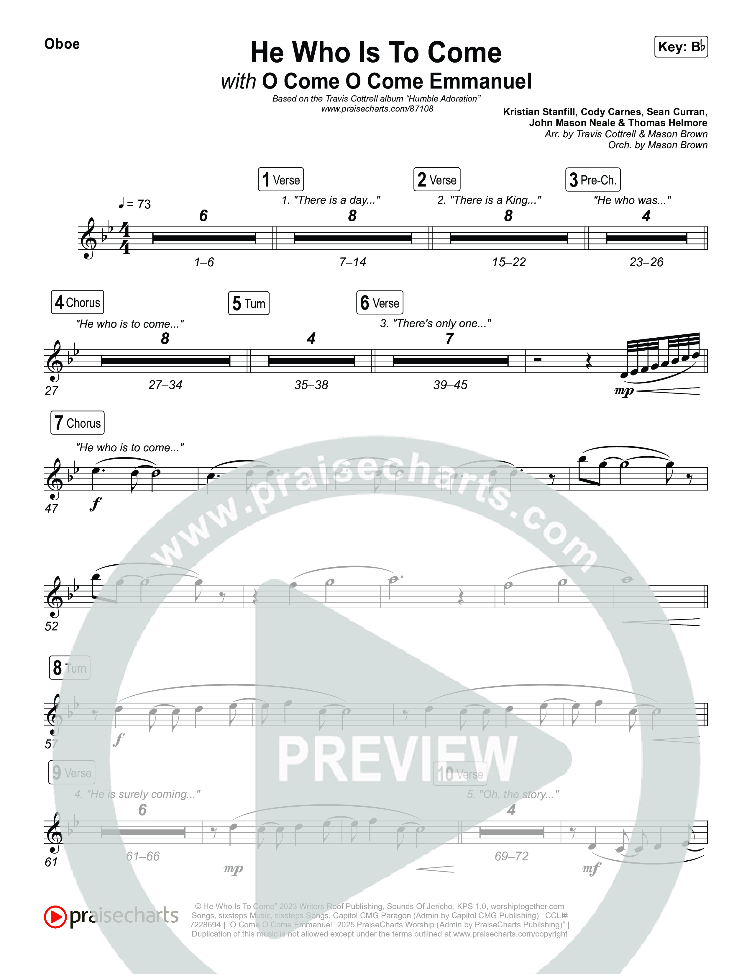 Download the Orchestration wind parts for He Who Is To Come / O Come O Come Emmanuel (Choral/SATB) by Travis Cottrell / Brooke Voland / Arr. Mason Brown, from the album Humble Adoration. This song was arranged by Travis Cottrell / Mason Brown in the key of Bb.