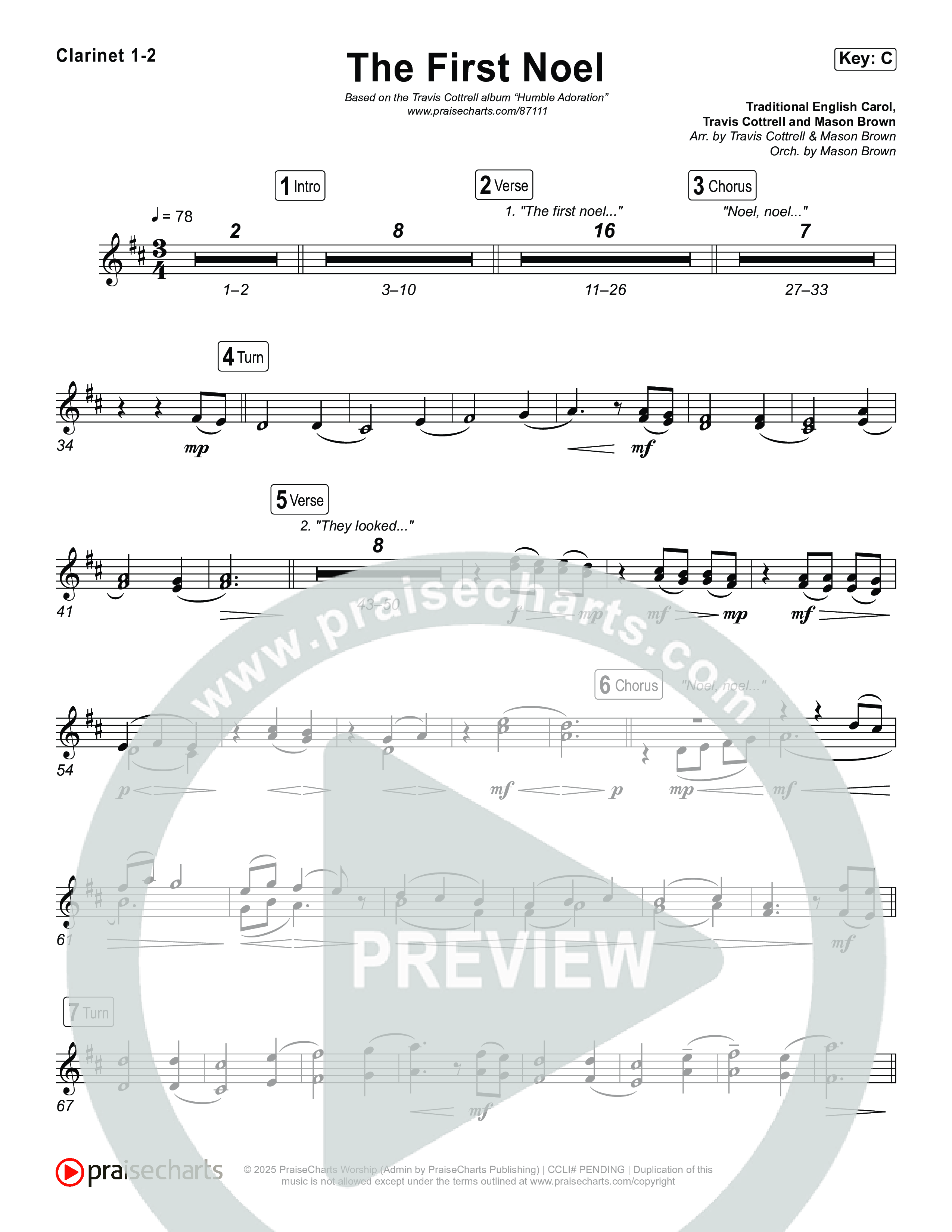 Download the Clarinet sheet music for The First Noel (Choral/SATB) by Travis Cottrell / Arr. Mason Brown, from the album Humble Adoration. This song was arranged by Travis Cottrell / Mason Brown in the key of C.