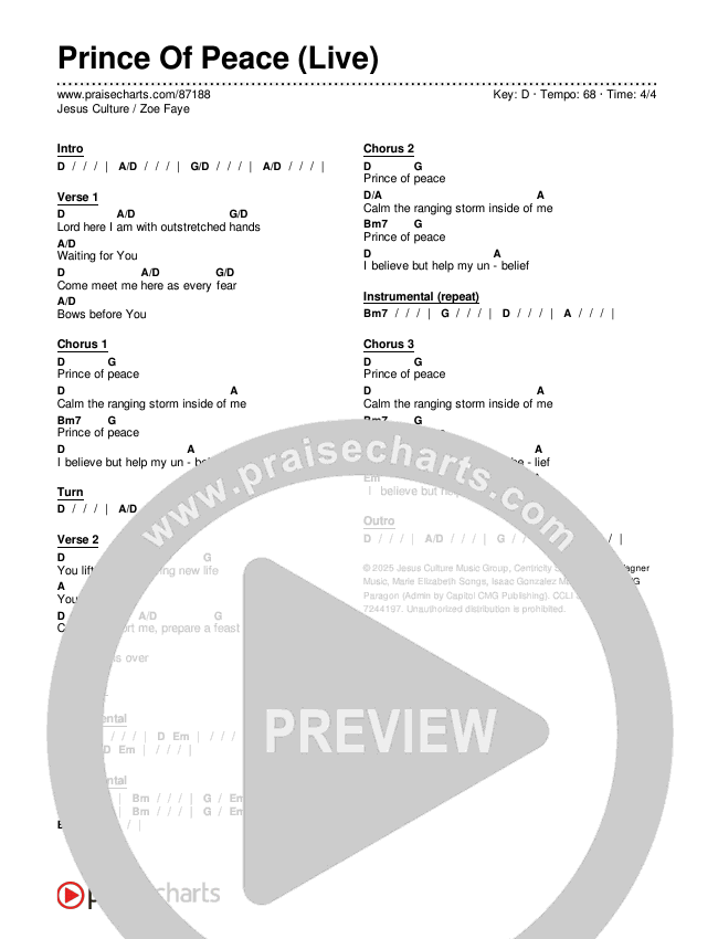 Prince Of Peace (Live) Chords PDF (Jesus Culture / Zoe Faye)