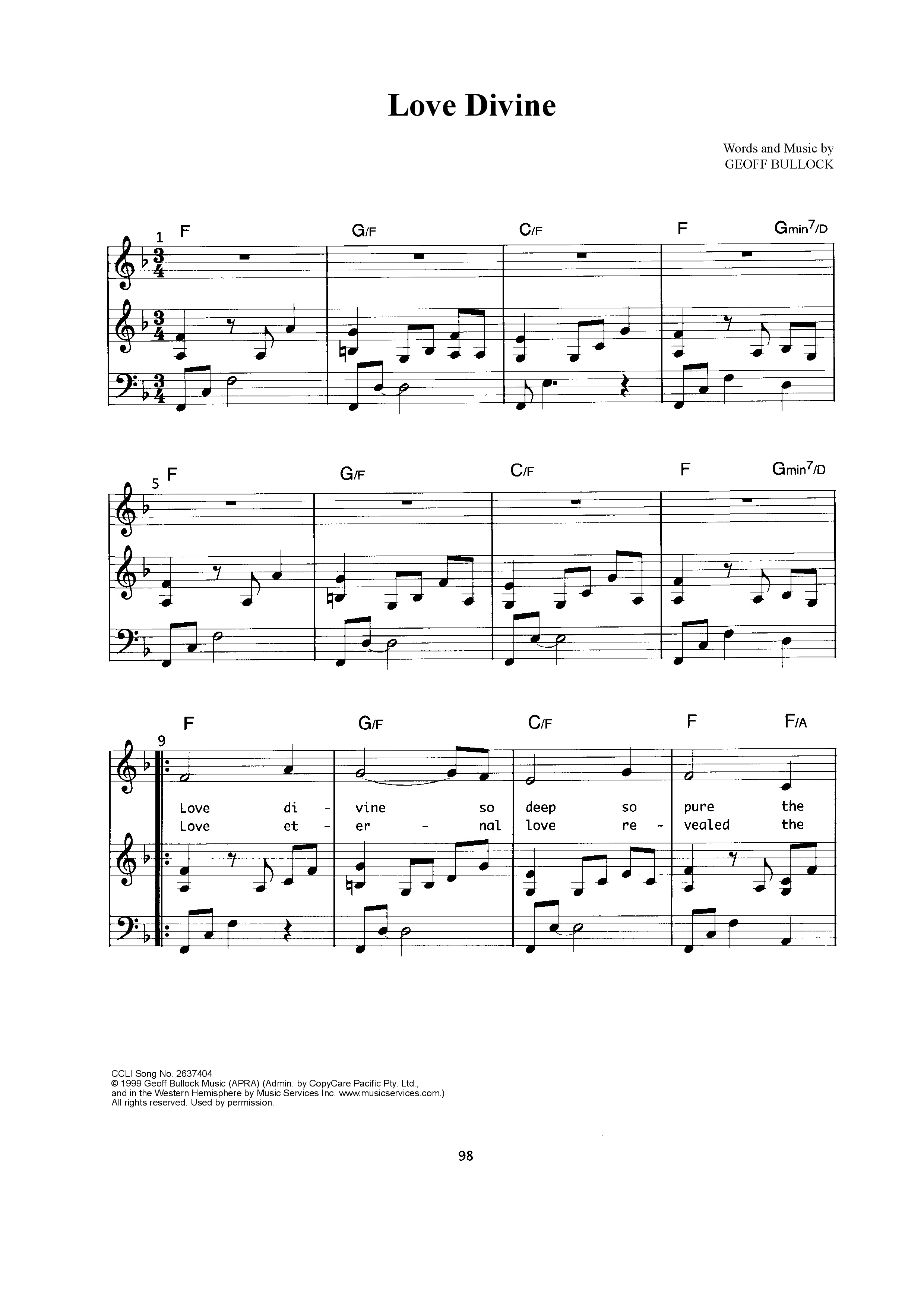 Download the sheet music for Love Divine by Geoff Bullock, from the album Deeper & Deeper (The Songs Of Geoff Bullock And Watershed Volume III).