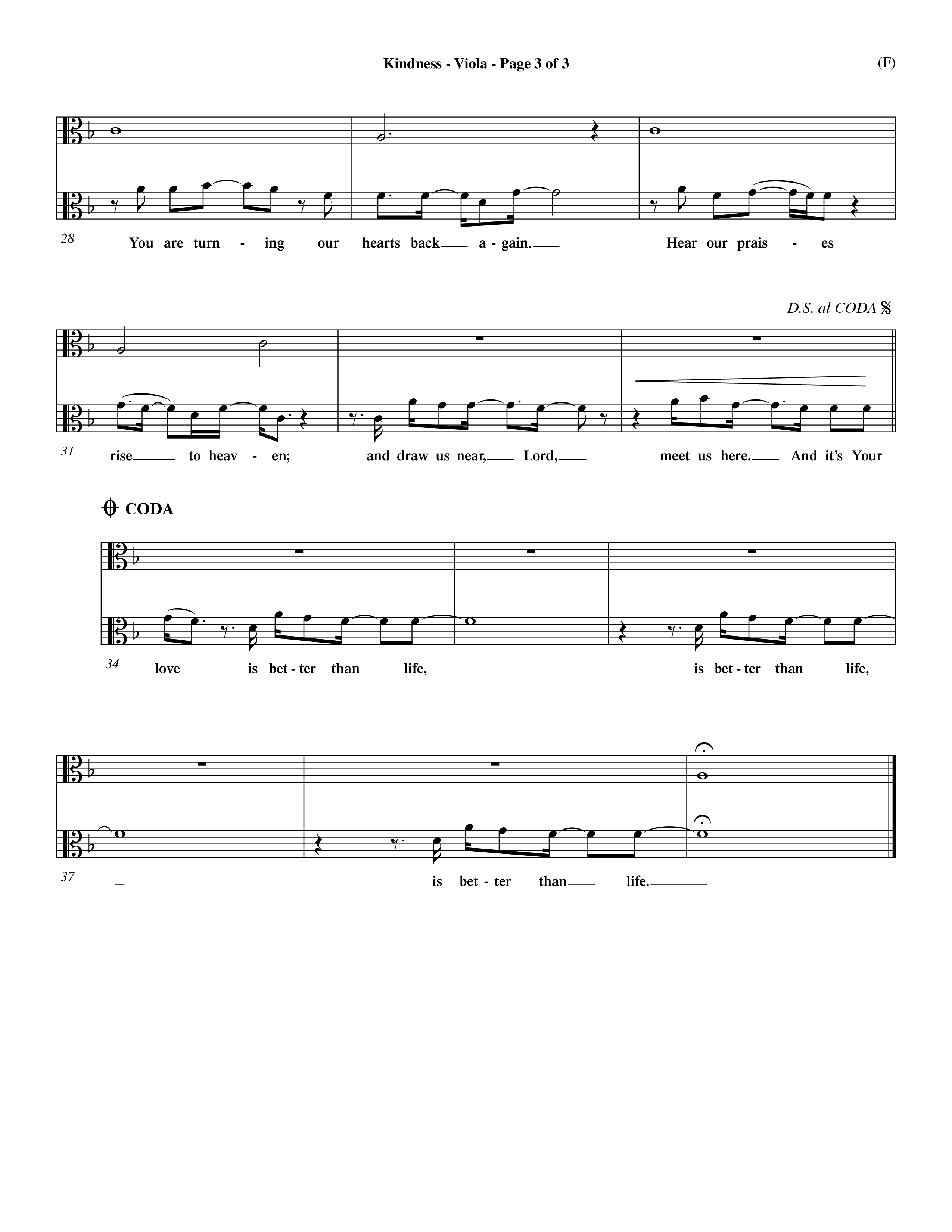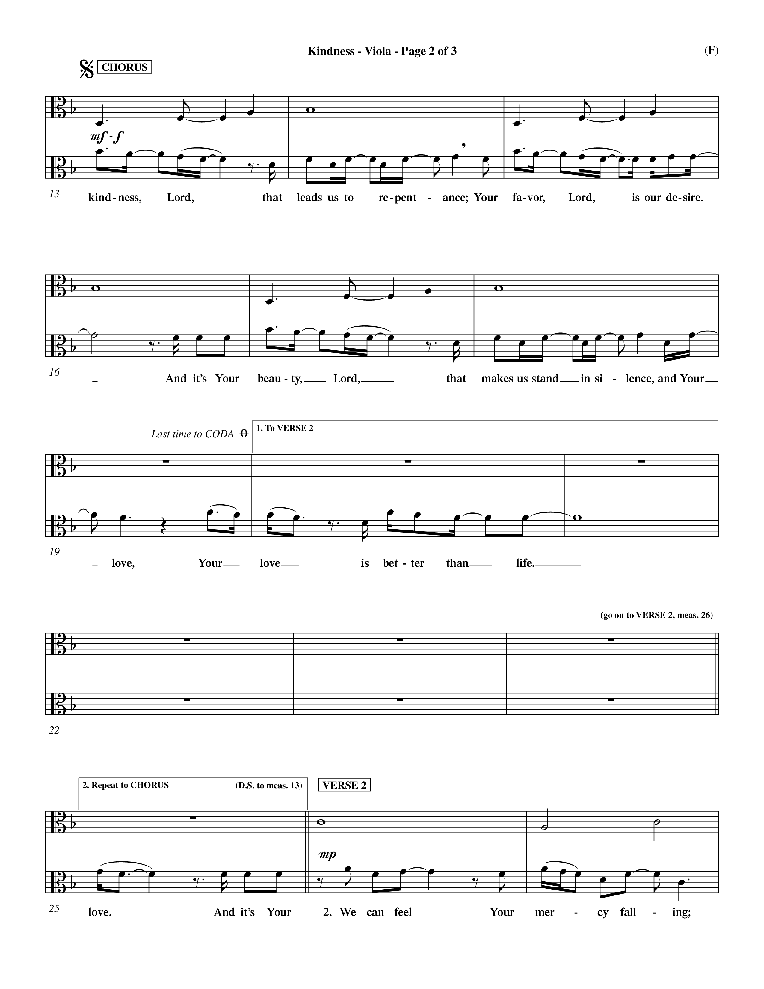 Download the Viola sheet music for Kindness (Choral Anthem SATB) by Word Music Choral / Arr. Dave Williamson, from the album Songs for Praise & Worship. This song was arranged by Dave Williamson in the key of F, G.