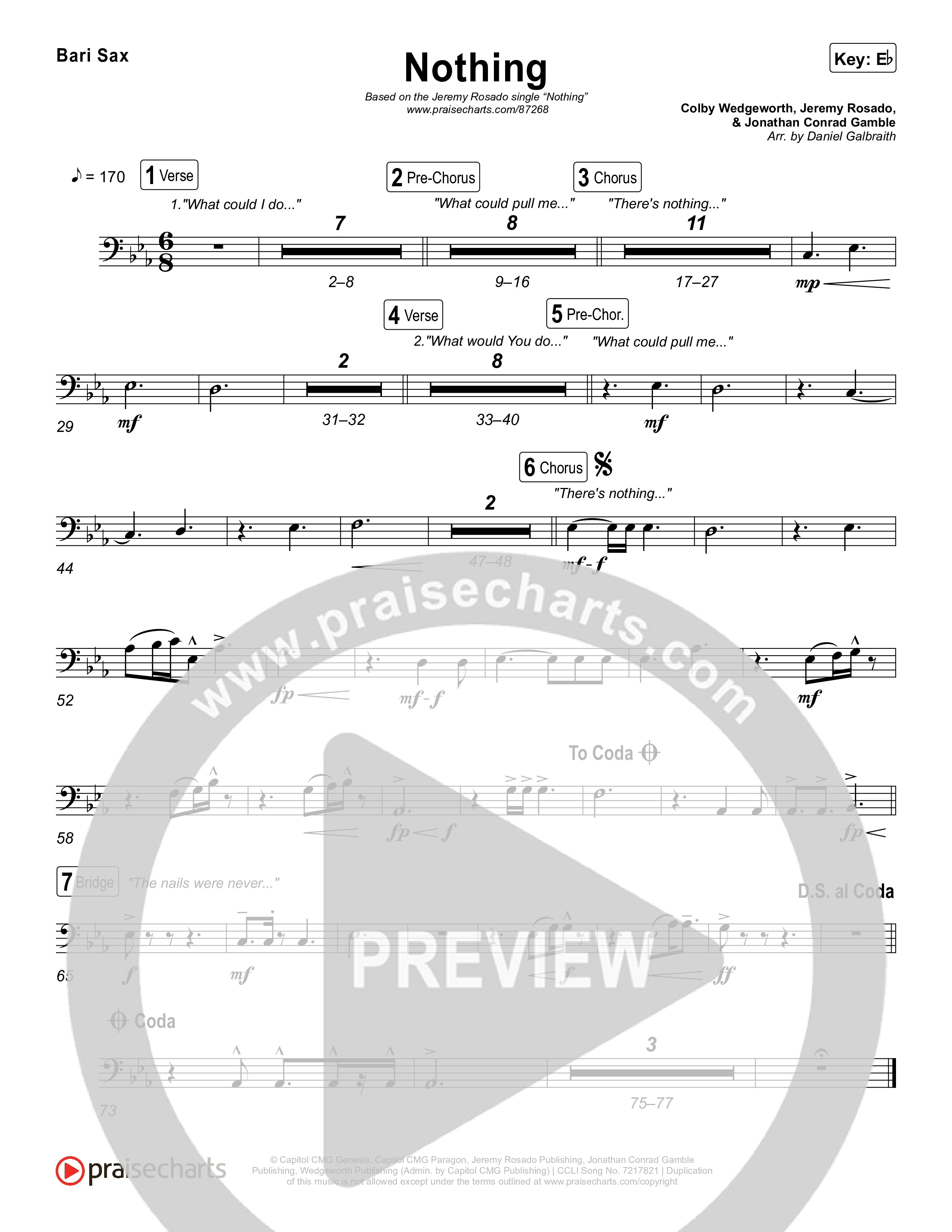 Download the Bari Sax sheet music for Nothing by Jeremy Rosado / Seph Schlueter, from the album Nothing. This song was arranged by Daniel Galbraith in the key of D, Eb.