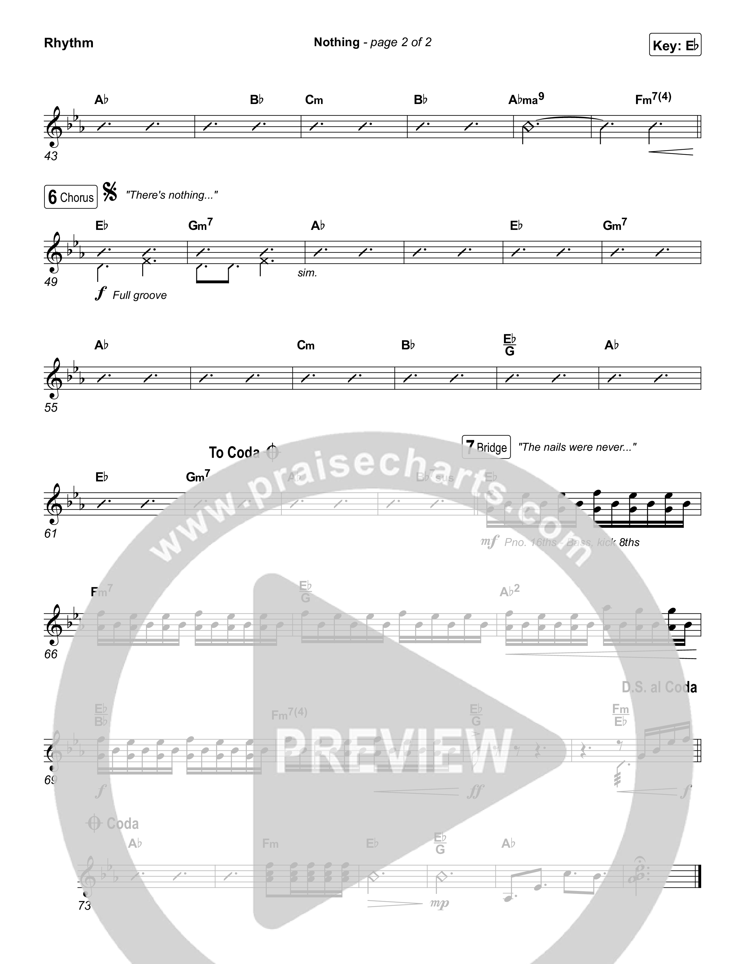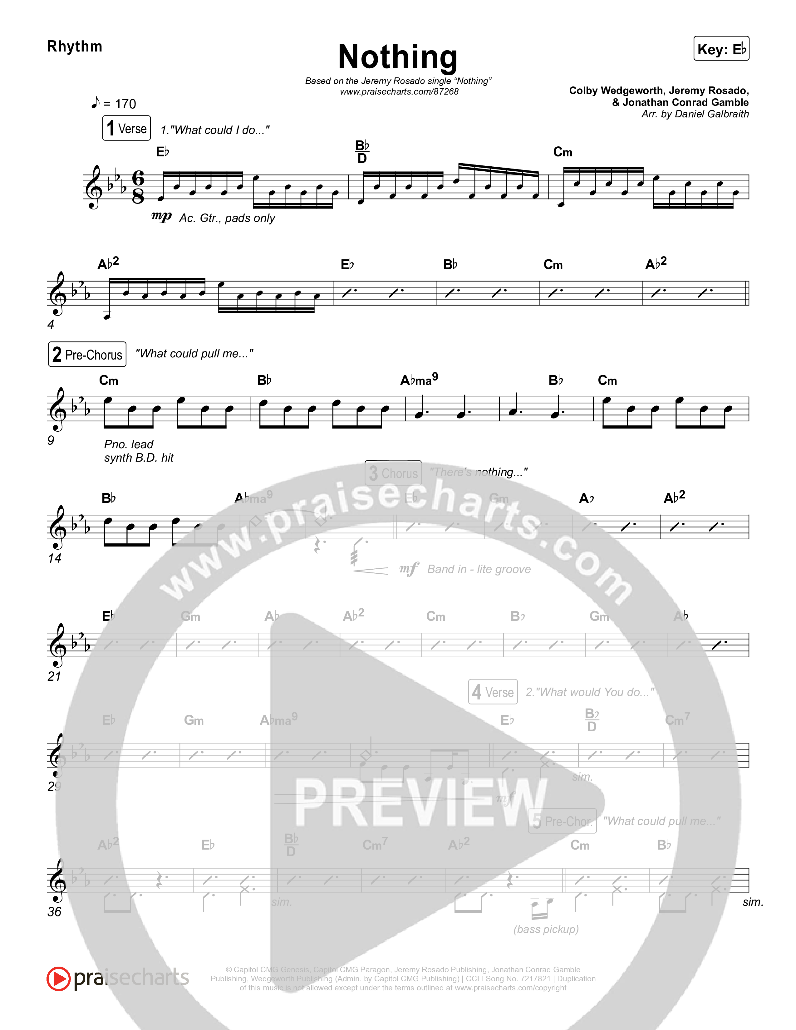 Download the Rhythm Chart for Nothing by Jeremy Rosado / Seph Schlueter, from the album Nothing. This song was arranged by Daniel Galbraith in the key of D, Eb.