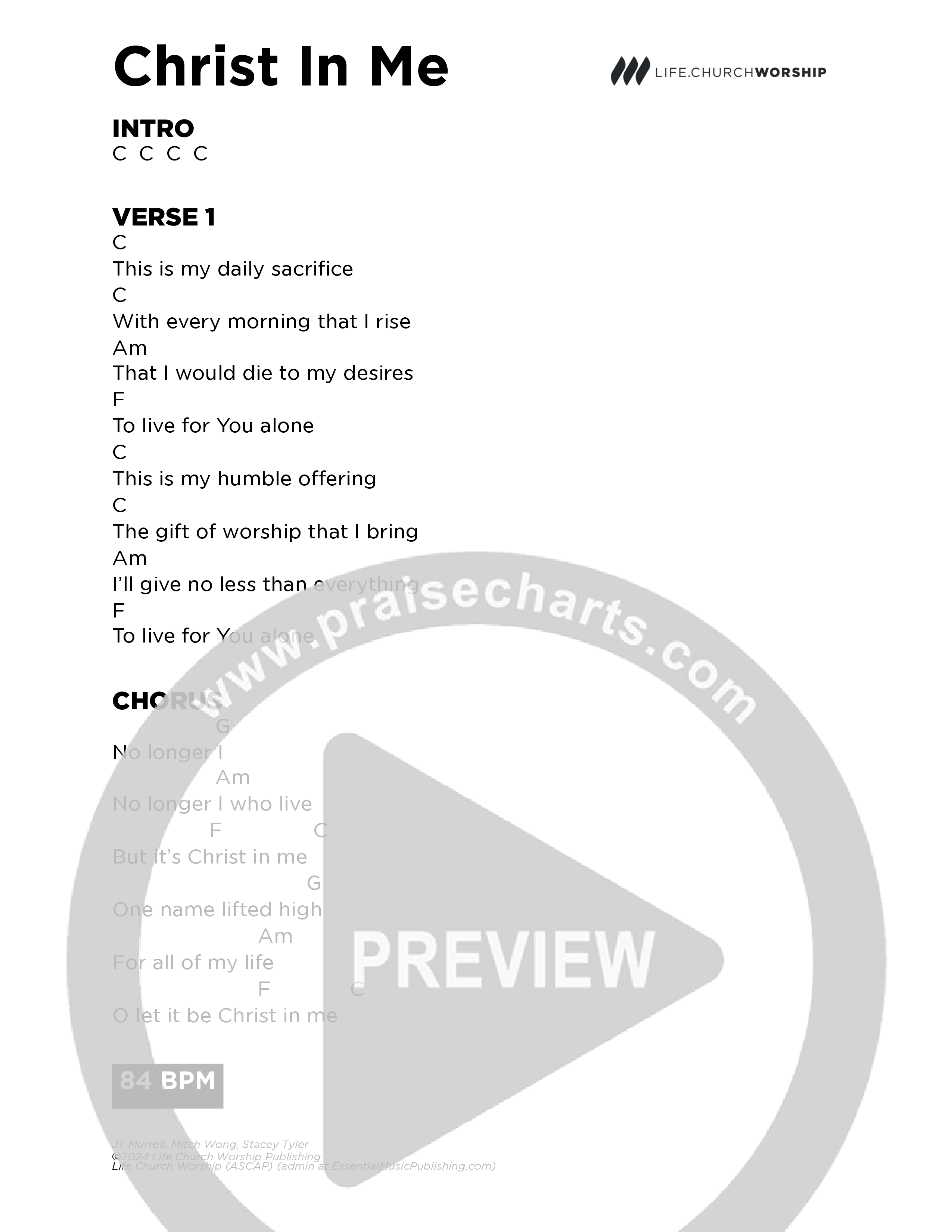 Christ In Me Chords PDF (Life.Church Worship)