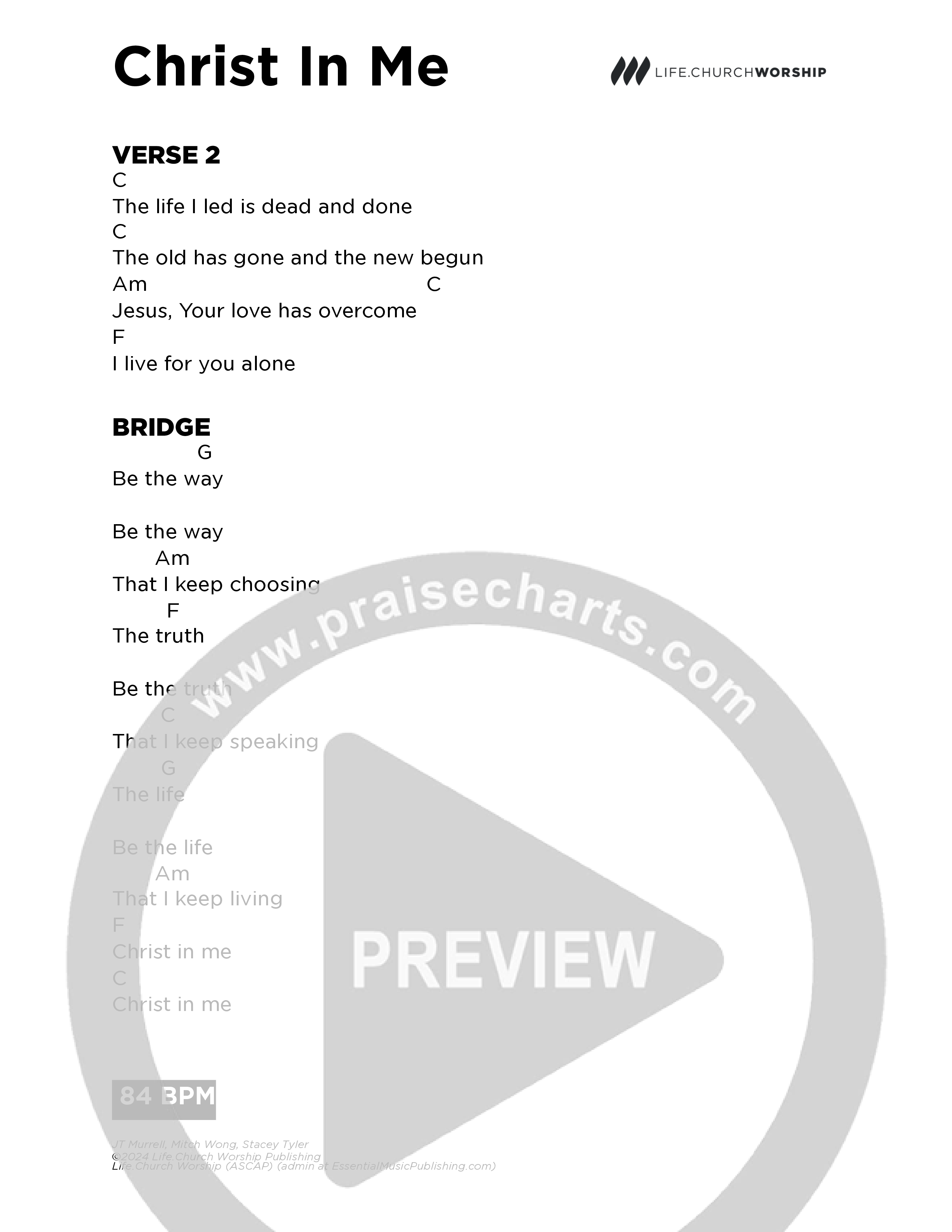 Download the PDF Chord Charts for Christ In Me by Life.Church Worship, from the album The Way.