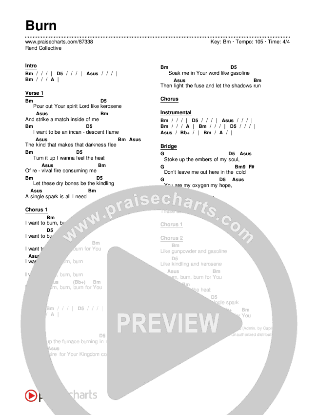 Download the PDF Chord Charts for Burn by Rend Collective, from the album FOLK! (Part 2).