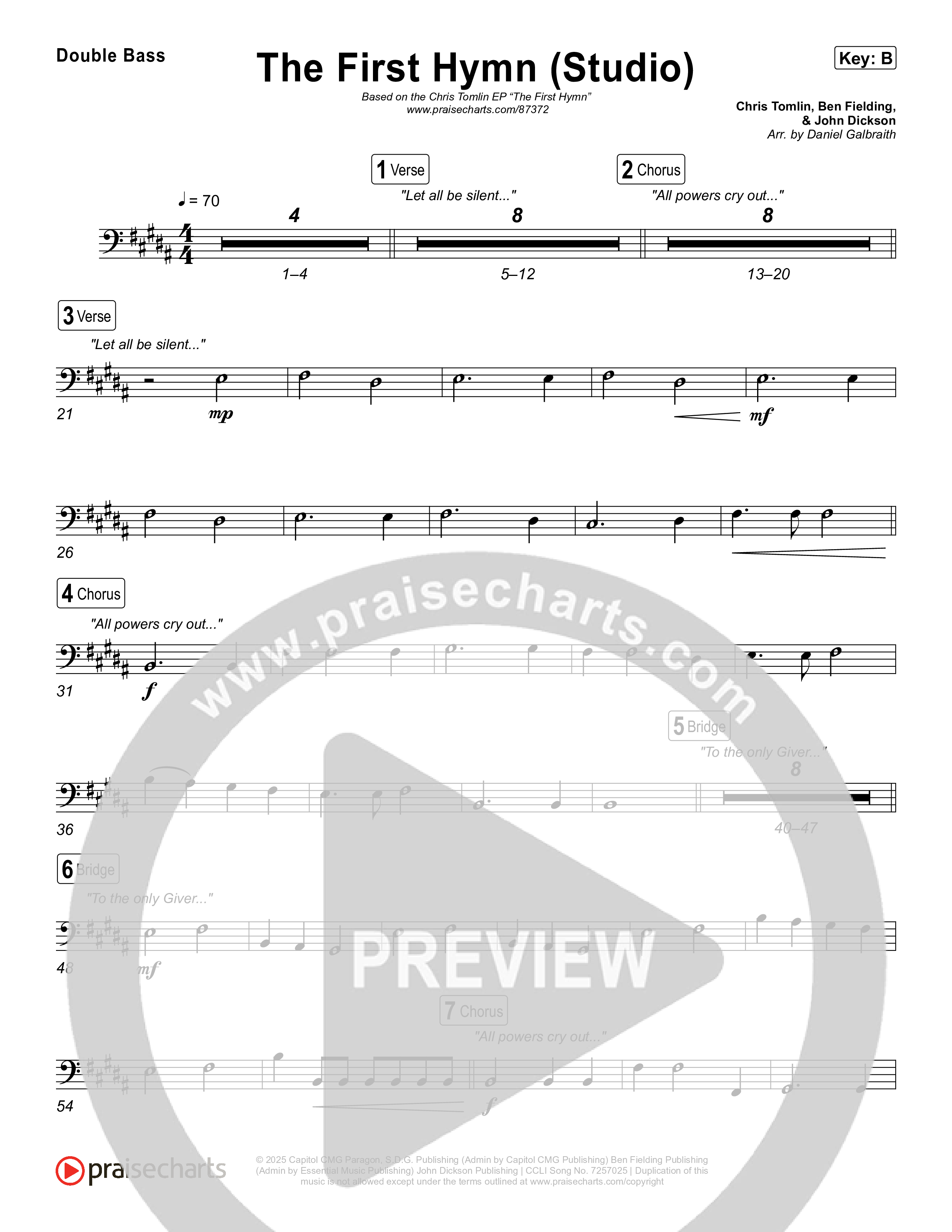 Download the String Bass sheet music for The First Hymn by Chris Tomlin / Ben Fielding, from the album The King Is Still The King. This song was arranged by Daniel Galbraith in the key of A, Ab, B, Bb, G.