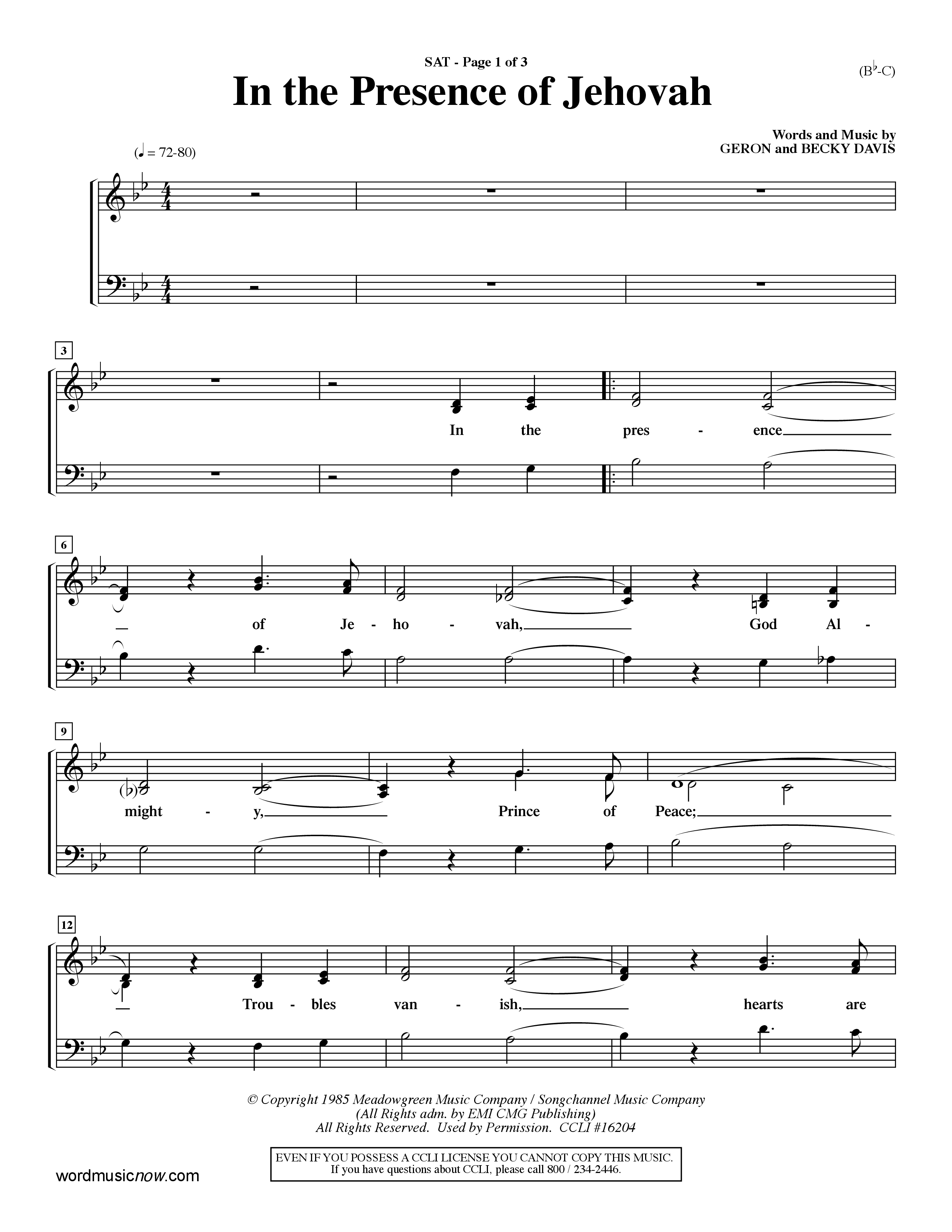 Download the Choir Sheet for In The Presence Of Jehovah by Word Music / Orch. Keith Wilbanks, from the album Word Music Now. This song was arranged by Keith Wilbanks in the key of Bb, C.