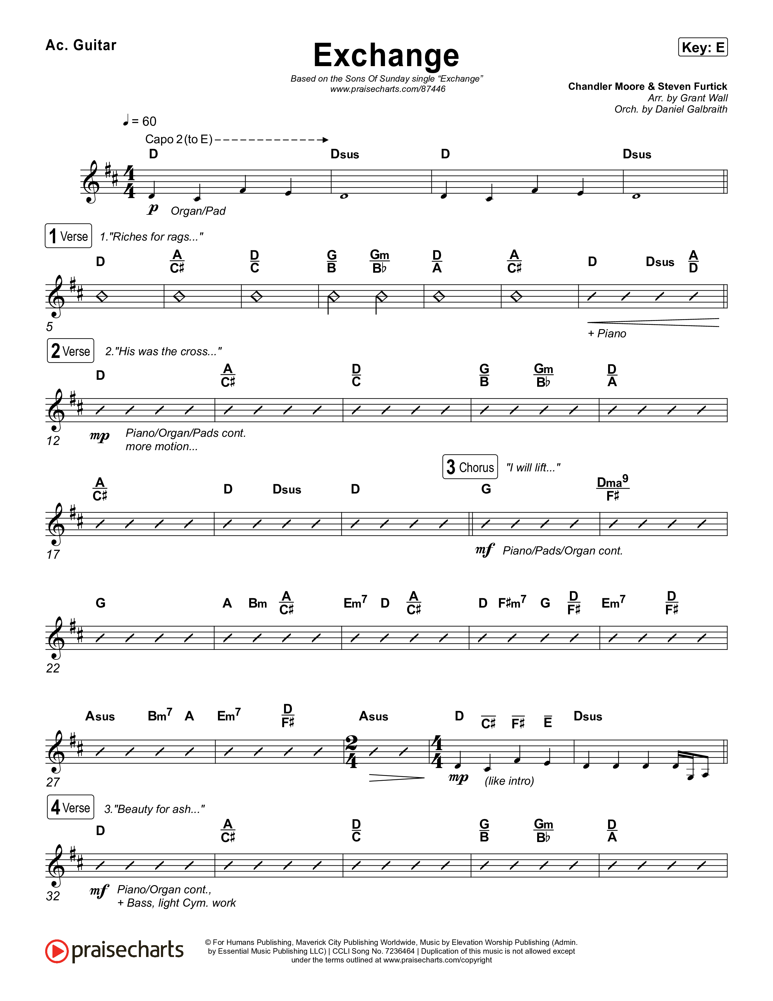 Download the Acoustic Guitar sheet music for Exchange by Sons Of Sunday, from the album Sons Of Sunday. This song was arranged by Daniel Galbraith in the key of C, D, E, Eb.