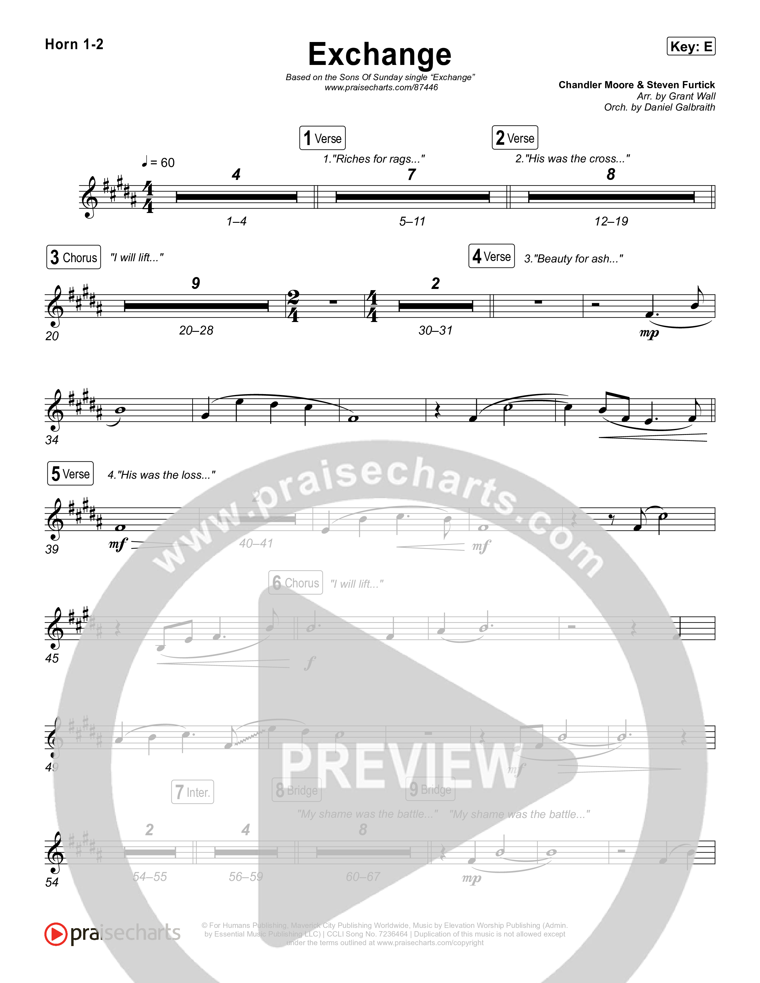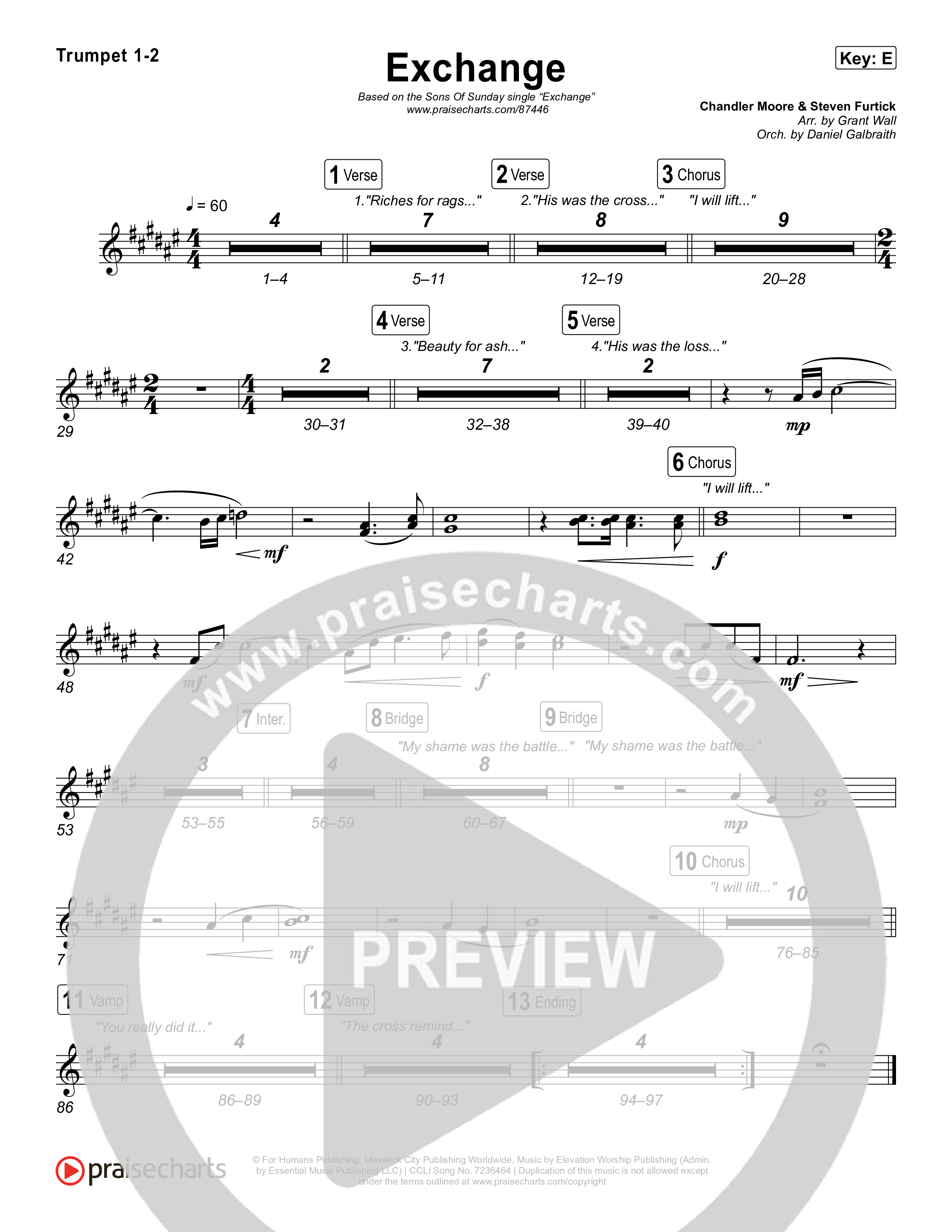 Download the Orchestration brass parts for Exchange by Sons Of Sunday, from the album Sons Of Sunday. This song was arranged by Daniel Galbraith in the key of C, D, E, Eb.
