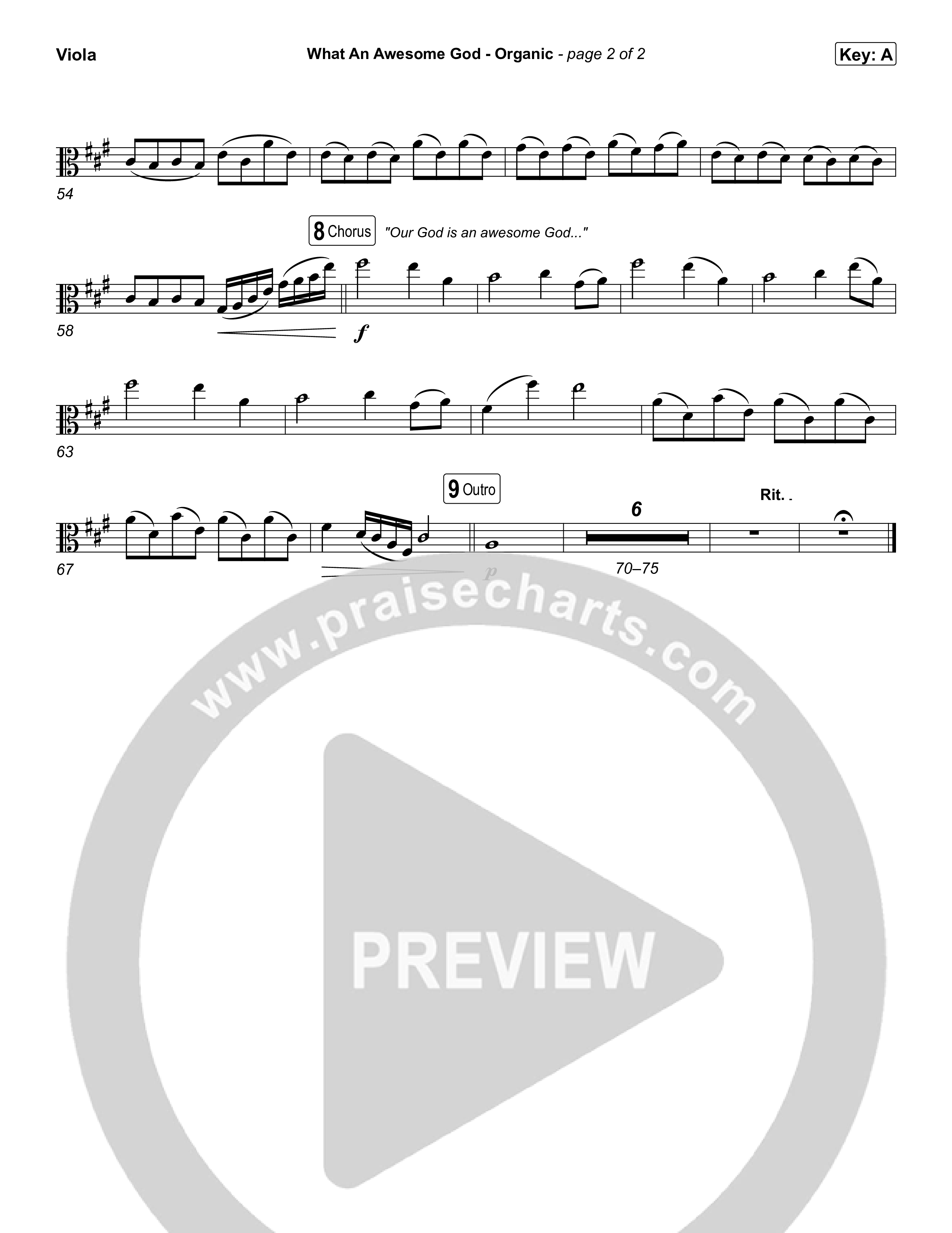 Download the Viola sheet music for What An Awesome God (Organic) by Phil Wickham, from the album What An Awesome God. This song was arranged by Grant Wall / Daniel Galbraith in the key of A, Ab, D, E, Eb, F, G.