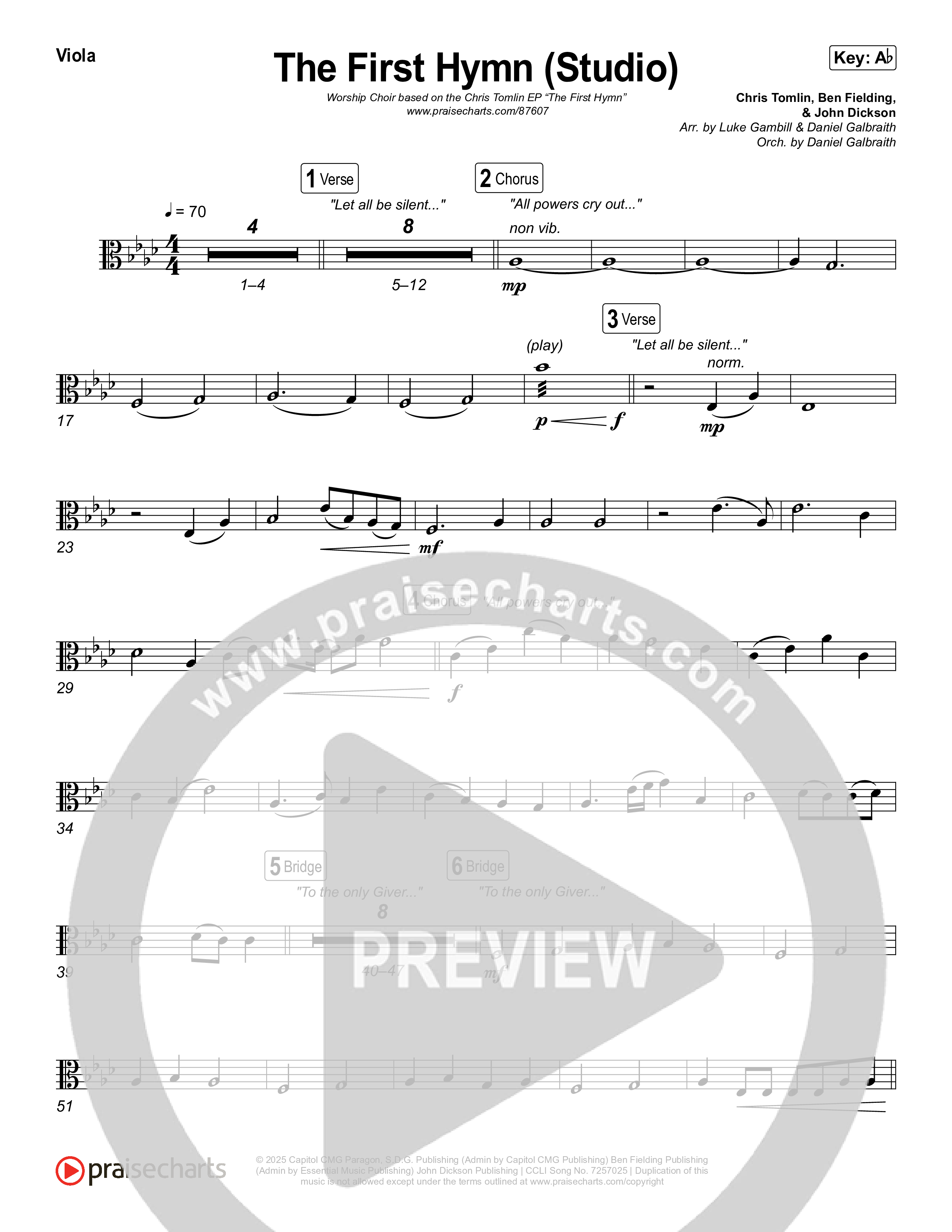 Download the Orchestration string parts for The First Hymn (Worship Choir/SAB) by Chris Tofilon / Ben Fielding / Arr. Luke Gambill, from the album The First Hymn. This song was arranged by Luke Gambill / Daniel Galbraith in the key of Ab.