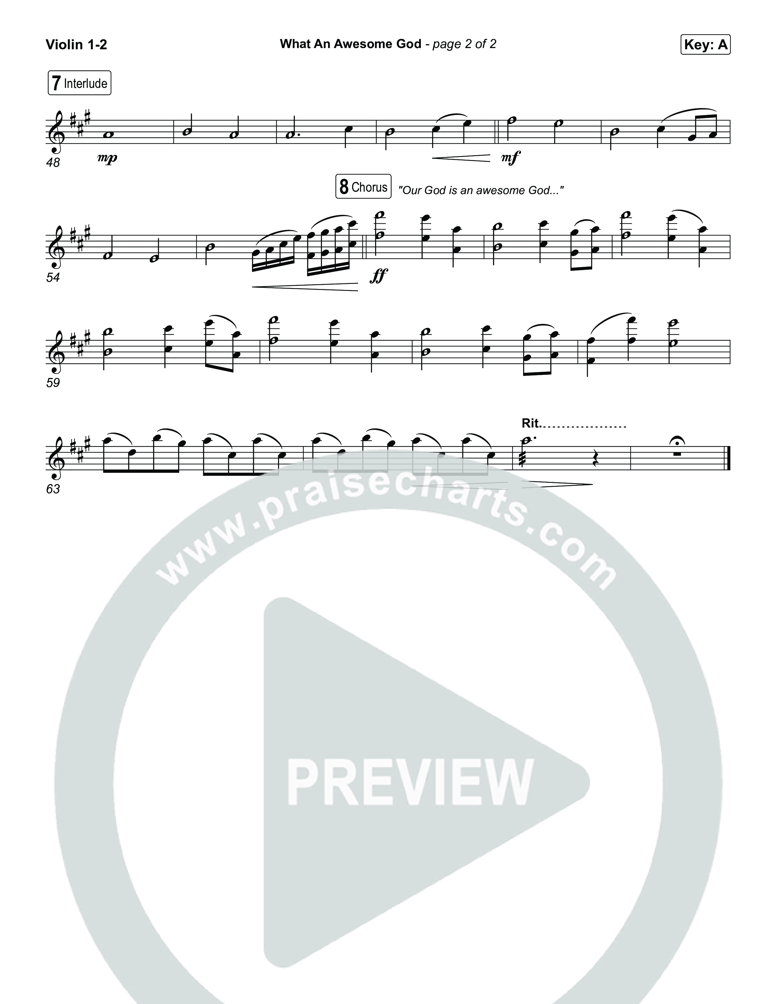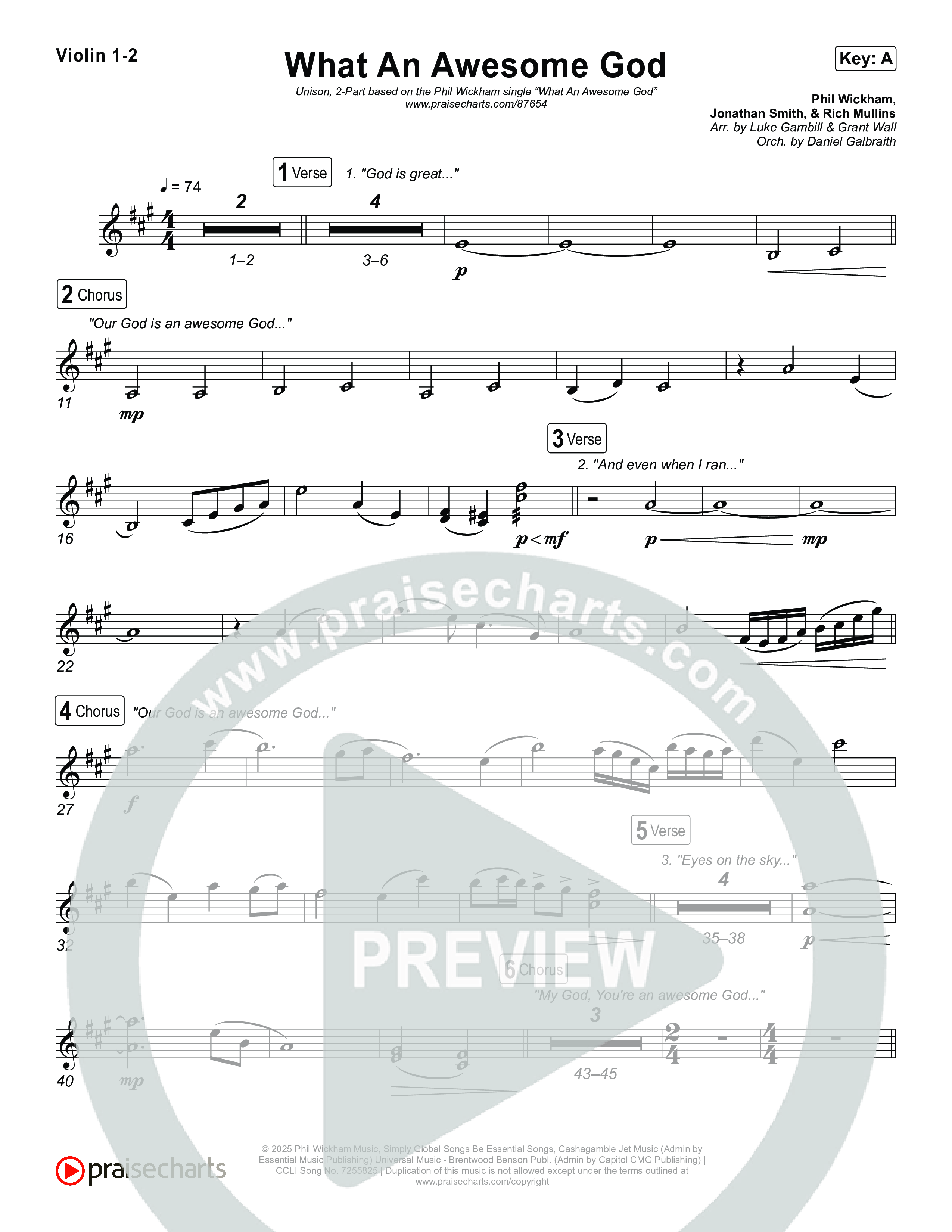 Download the Violin sheet music for What An Awesome God (Unison/2-Part) by Phil Wickham / Arr. Luke Gambill, from the album What An Awesome God. This song was arranged by Luke Gambill / Daniel Galbraith / Grant Wall in the key of A.