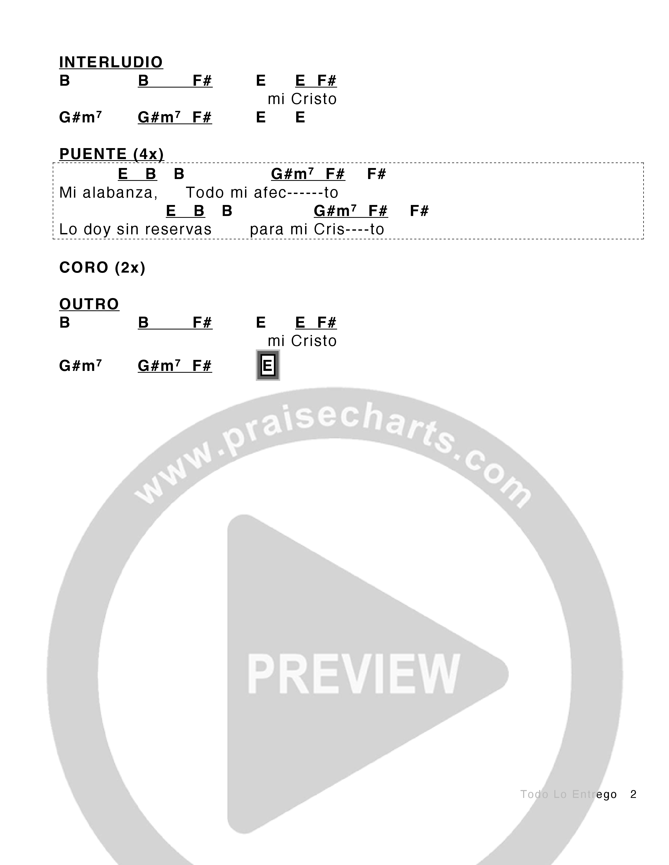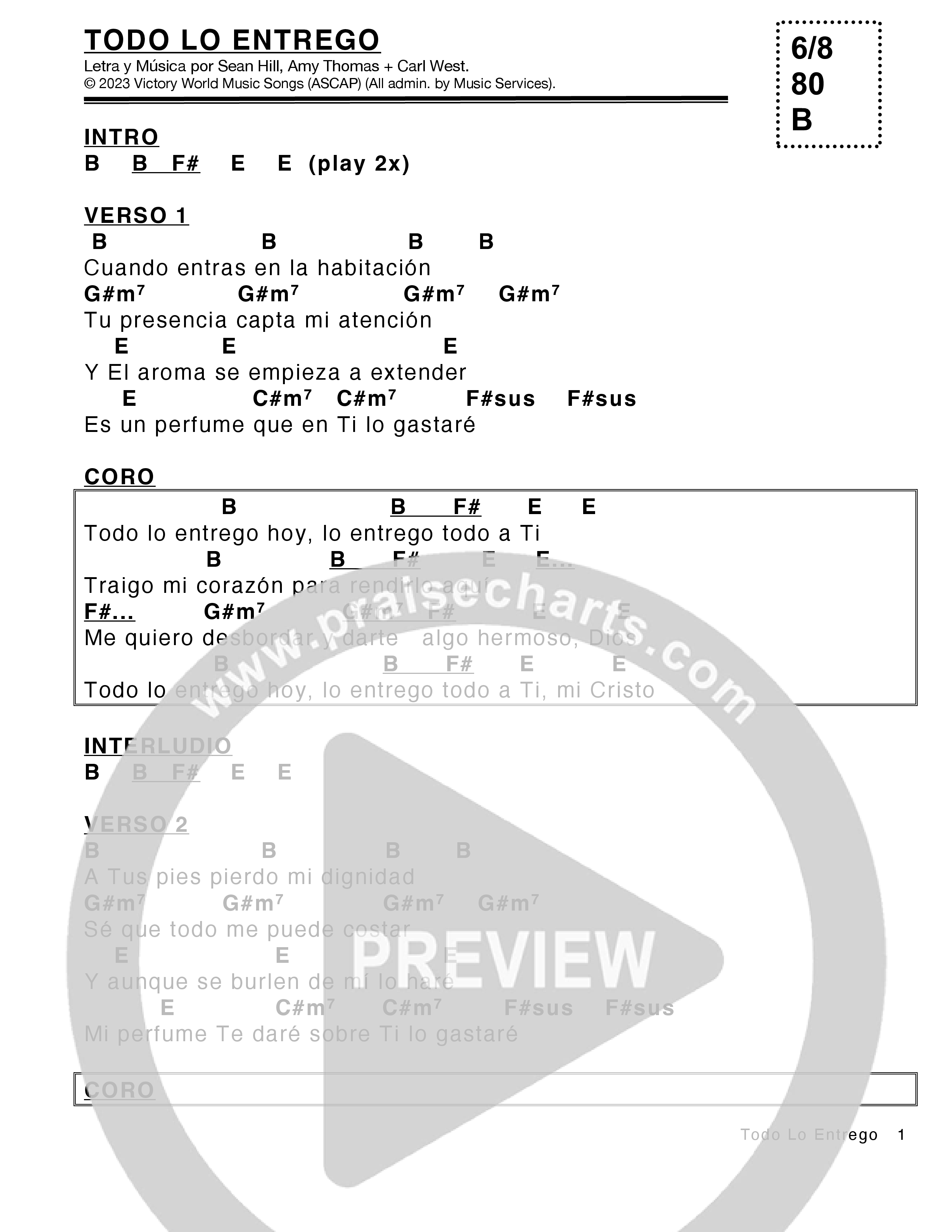 Download the PDF Chord Charts for Todo Lo Entrego (Spend It All) by Victory House Worship, from the album Todo Lo Entrego.