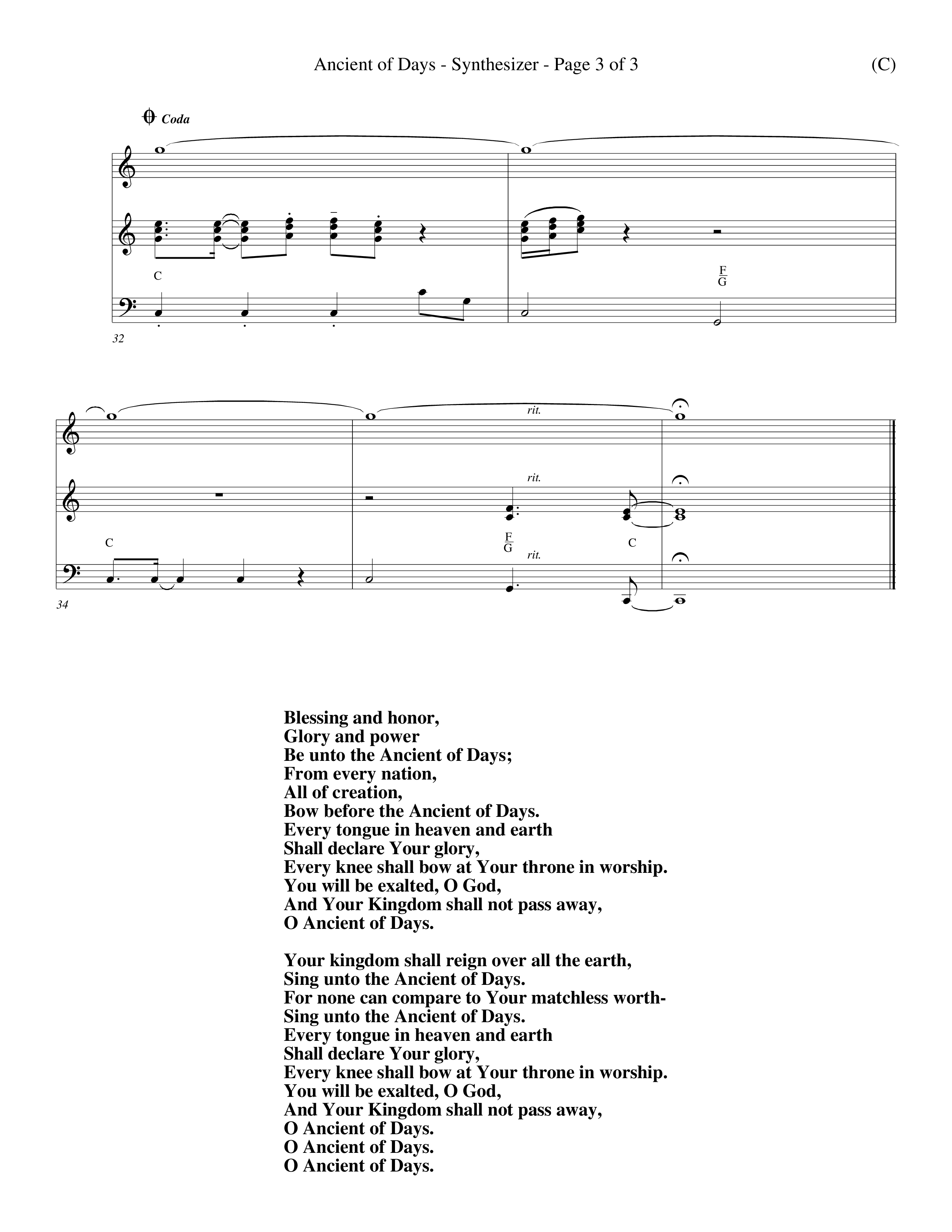 Download the Orchestration for Ancient Of Days (Choral Anthem SATB) by Word Music Choral / Orch. Dave Williamson, from the album More Songs for Praise & Worship. This song was arranged by Dave Williamson in the key of C, D.