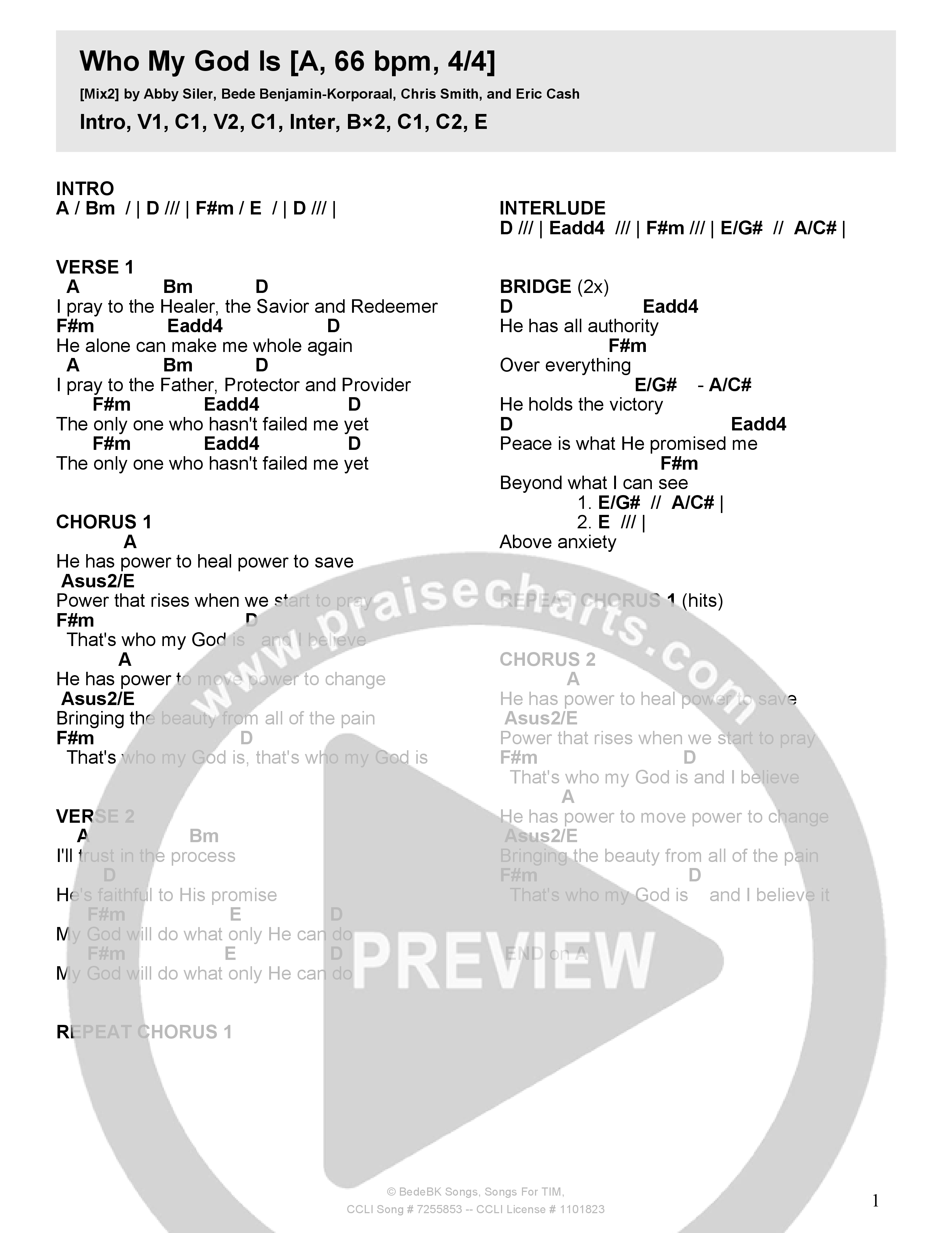 Download the PDF Chord Charts for That's Who My God Is by Crossroads Music, from the album That's Who My God Is.