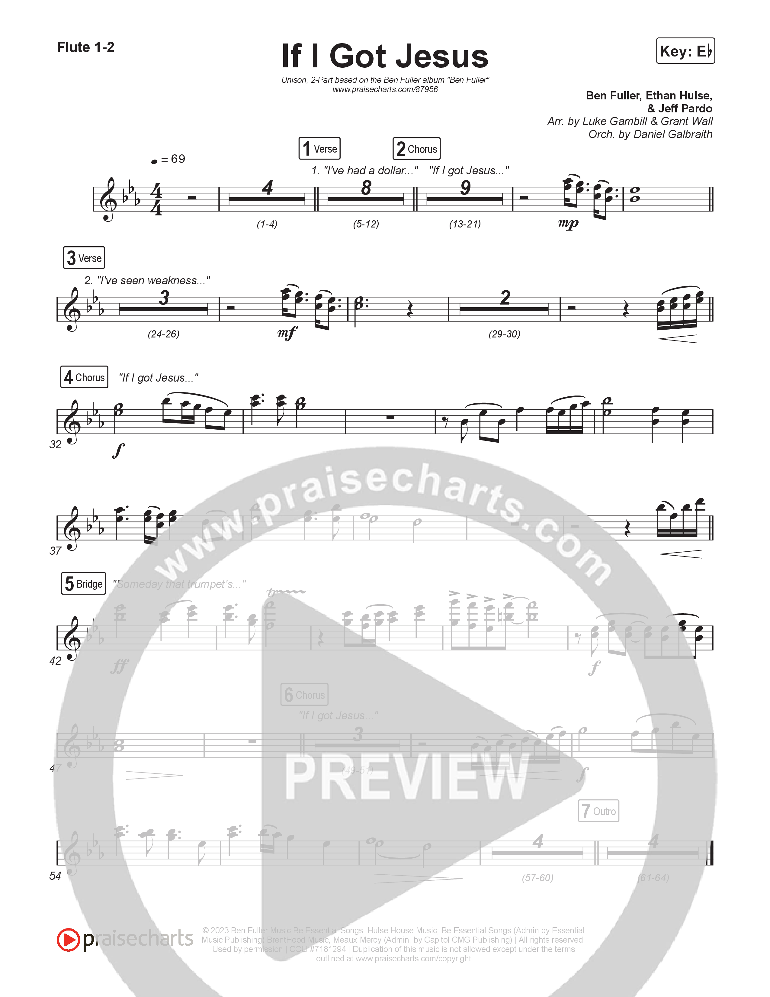 Download the Flute sheet music for If I Got Jesus (Unison/2-Part) by Ben Fuller / Arr. Luke Gambill, from the album Ben Fuller. This song was arranged by Luke Gambill / Daniel Galbraith / Grant Wall in the key of Eb.