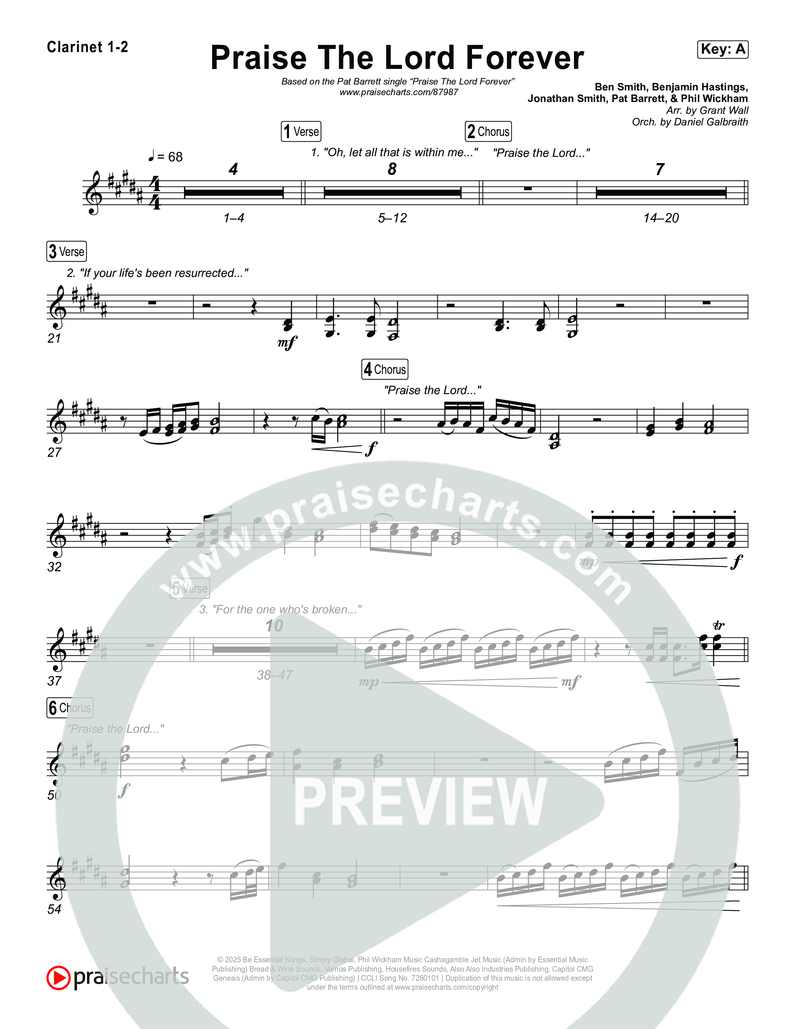 Praise The Lord Forever Clarinet Sheet Music PDF (Pat Barrett)