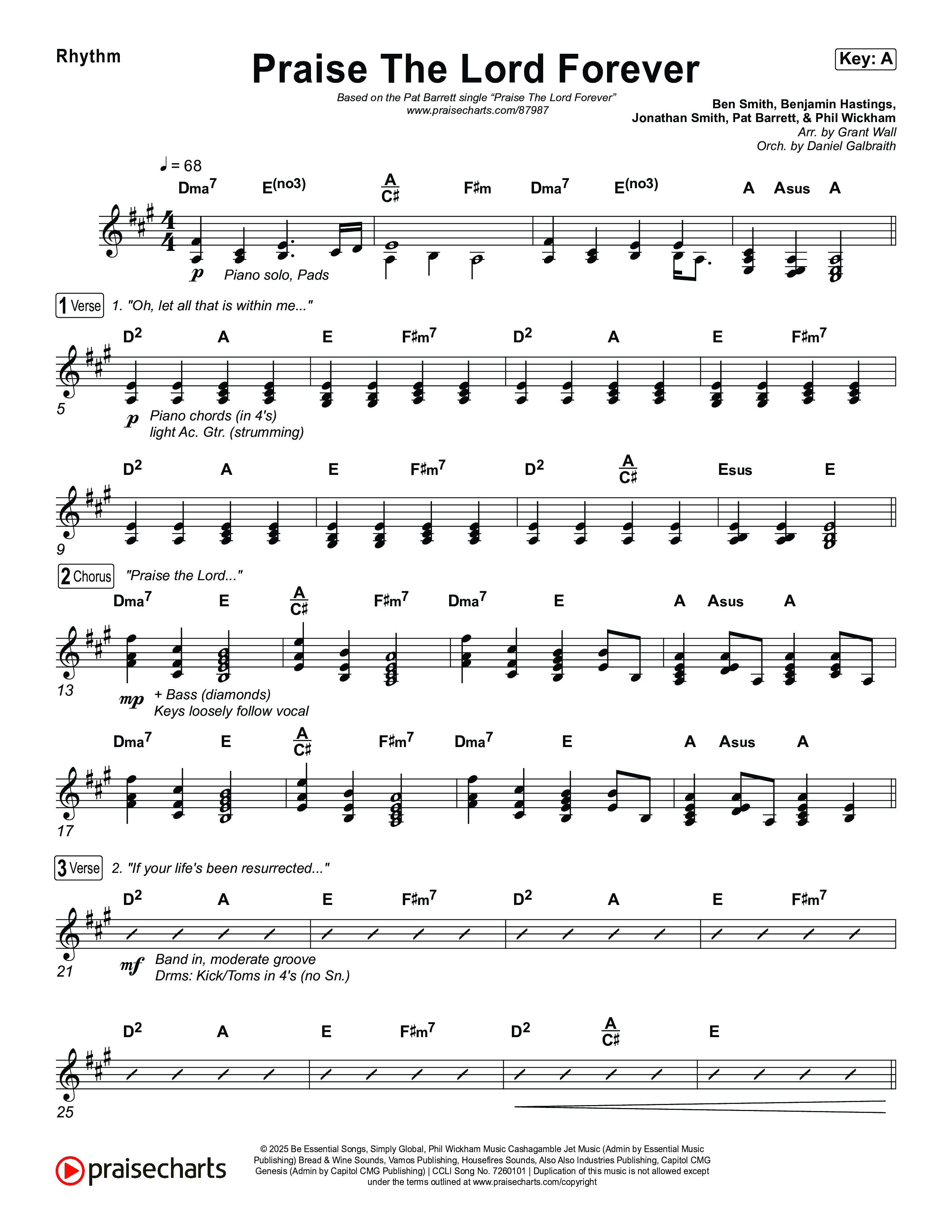 Download the PDF sheet music for Praise The Lord Forever by Pat Barrett, from the album Praise The Lord Forever. This song was arranged by Grant Wall / Daniel Galbraith in the key of A, G.