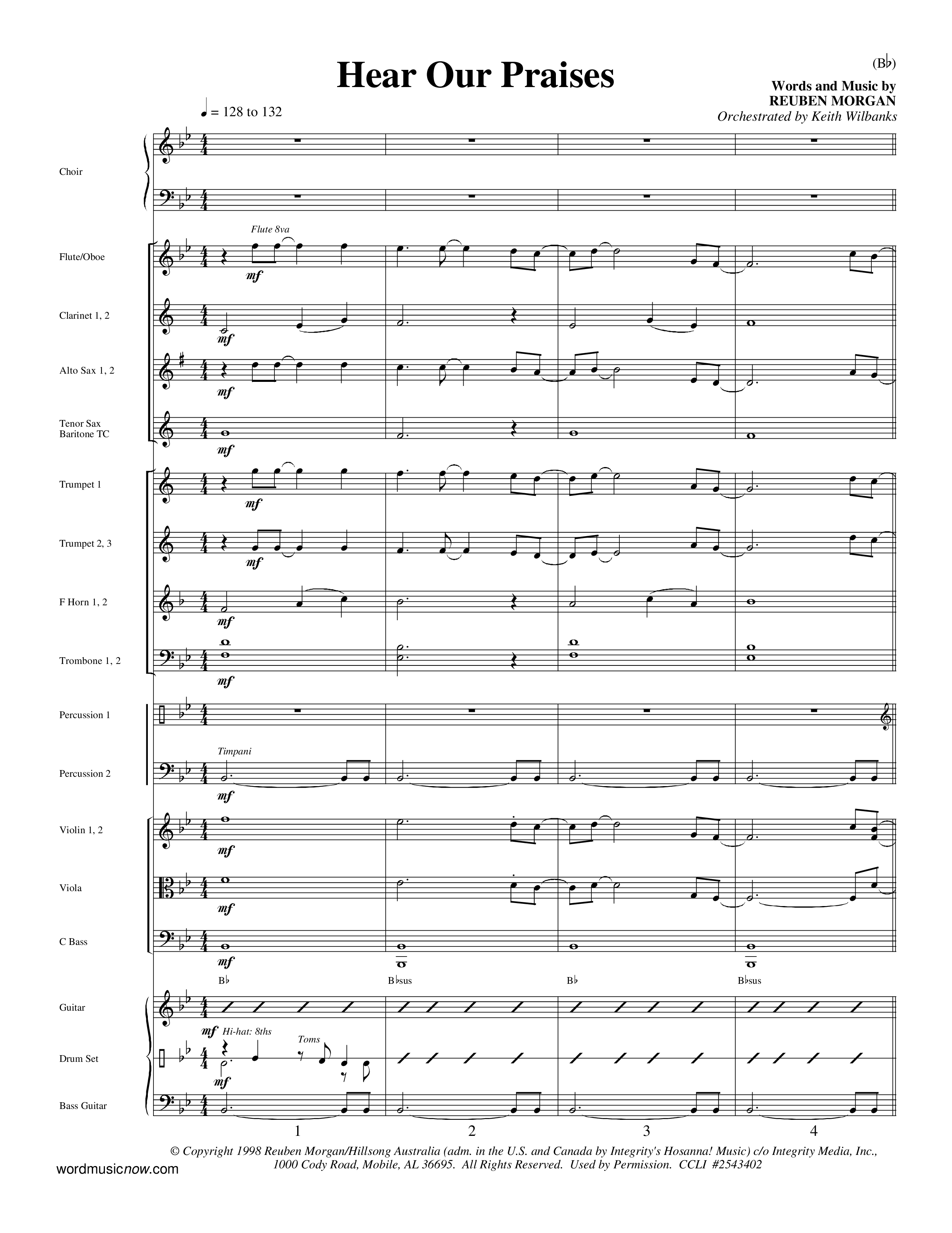 Download the Orchestration for Hear Our Praises (Choral Anthem SATB) by Word Music Choral / Orch. Keith Wilbanks, from the album More Songs for Praise & Worship 2. This song was arranged by Keith Wilbanks in the key of Bb, C.