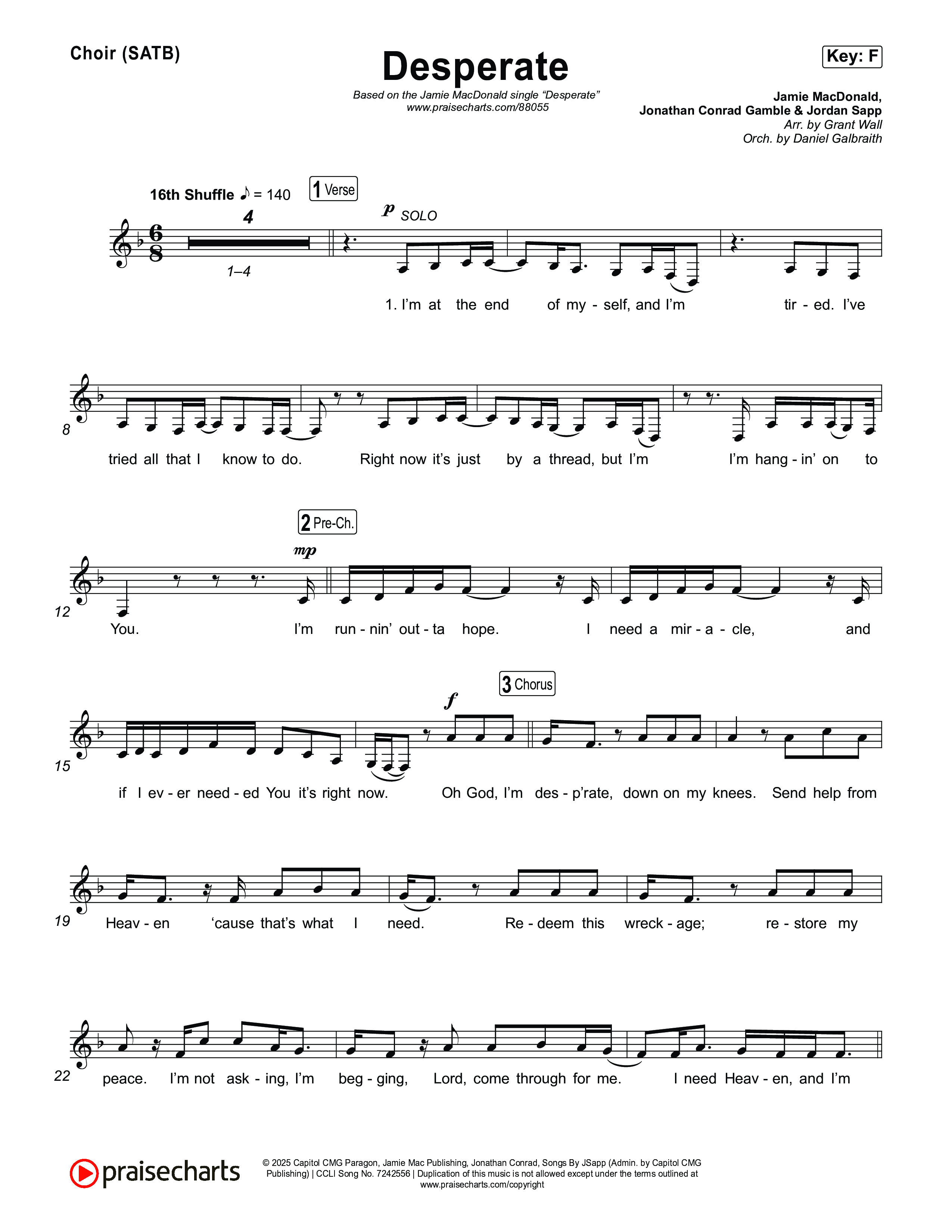 Download the Choir Sheet for Desperate by Jamie MacDonald, from the album Desperate. This song was arranged by Grant Wall / Daniel Galbraith in the key of F, G.