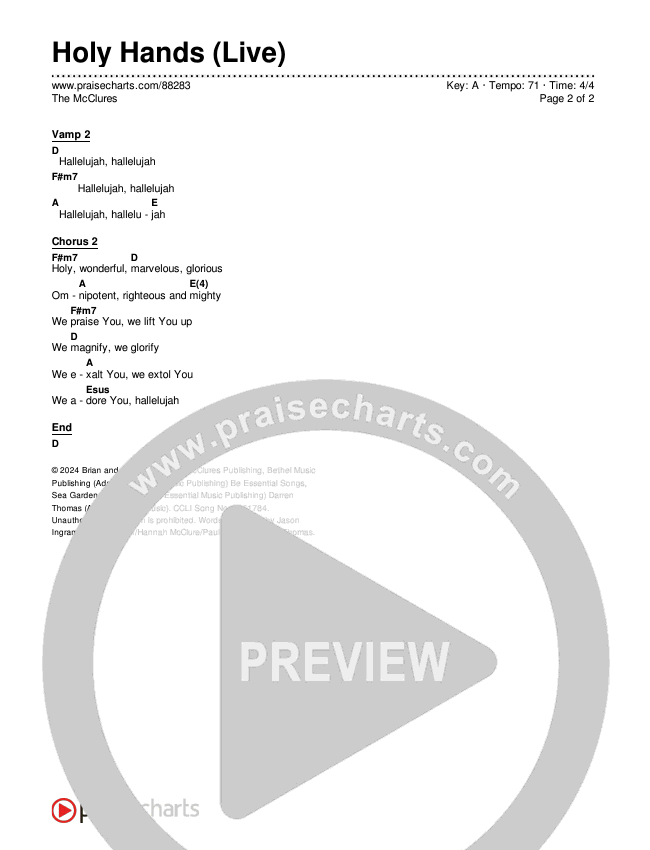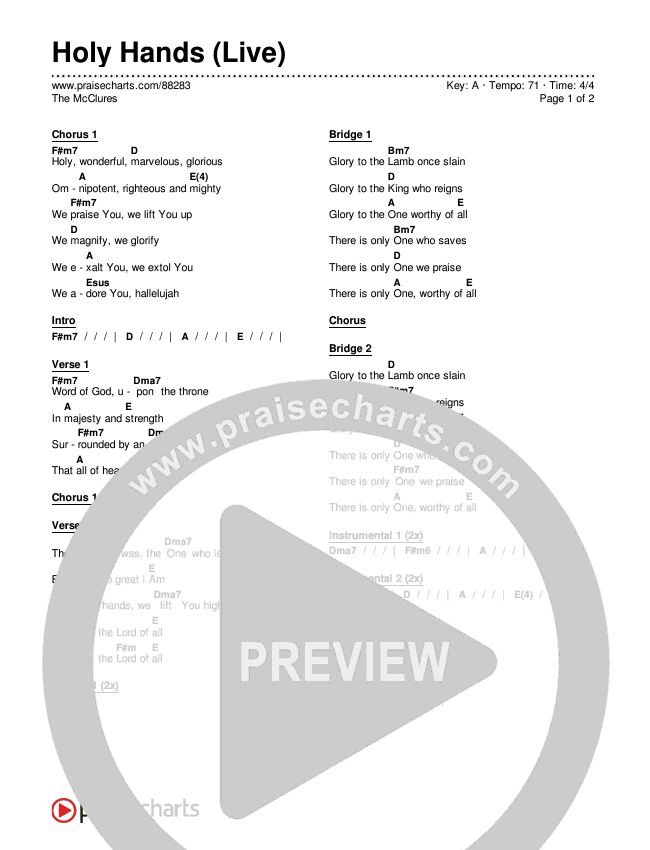 Download the PDF Chord Charts for Holy Hands (Live) by The McClures, from the album After Your Heart (Live). This song was arranged by Grant Wall / Daniel Galbraith in the key of A, Bb.