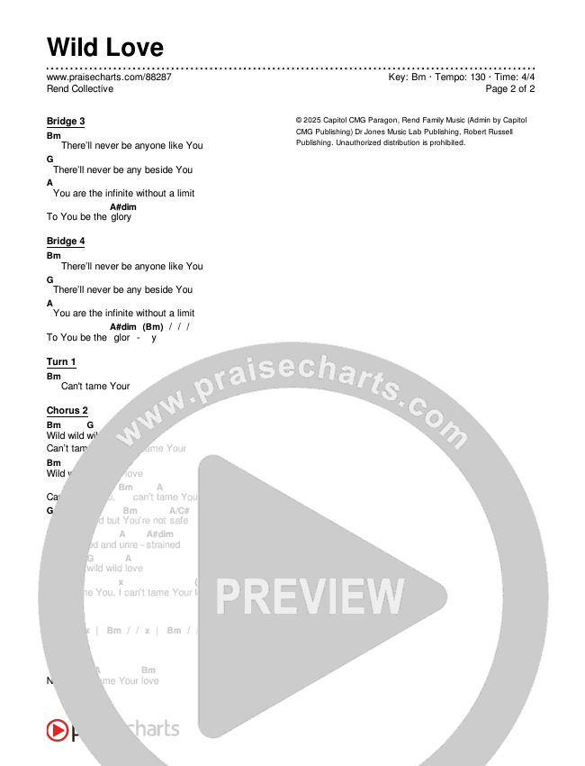 Download the PDF Chord Charts for Wild Love by Rend Collective, from the album Wild Love.