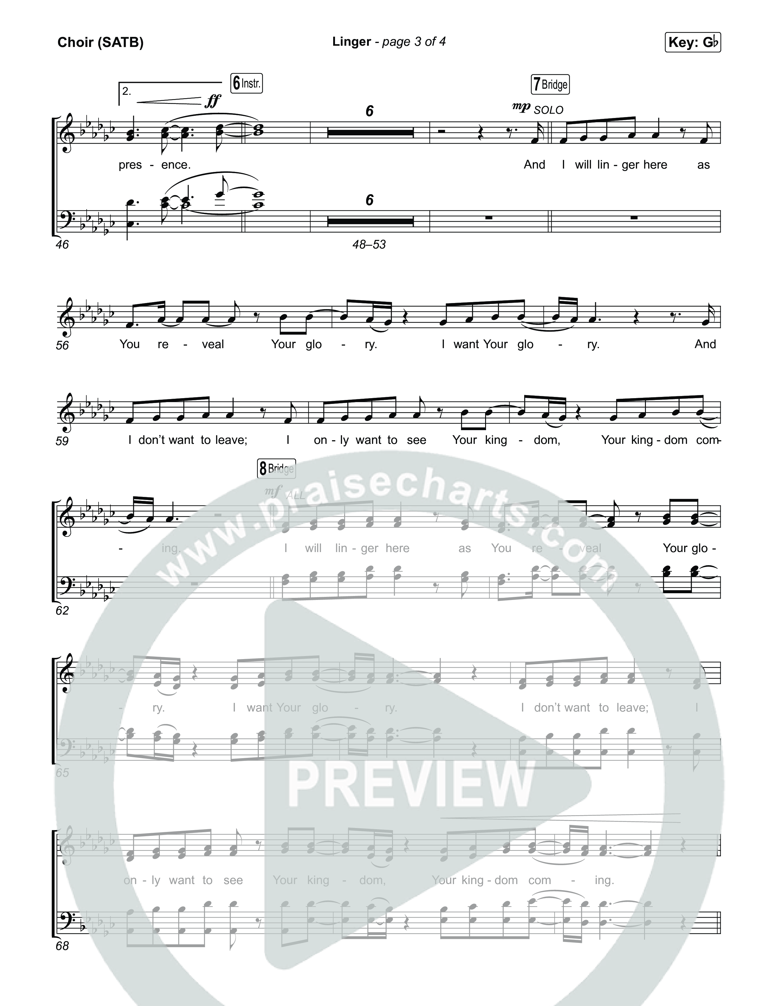 Download the Choir Sheet for Linger by Bethany Jennings, from the album Linger. This song was arranged by Grant Wall in the key of G, Gb.