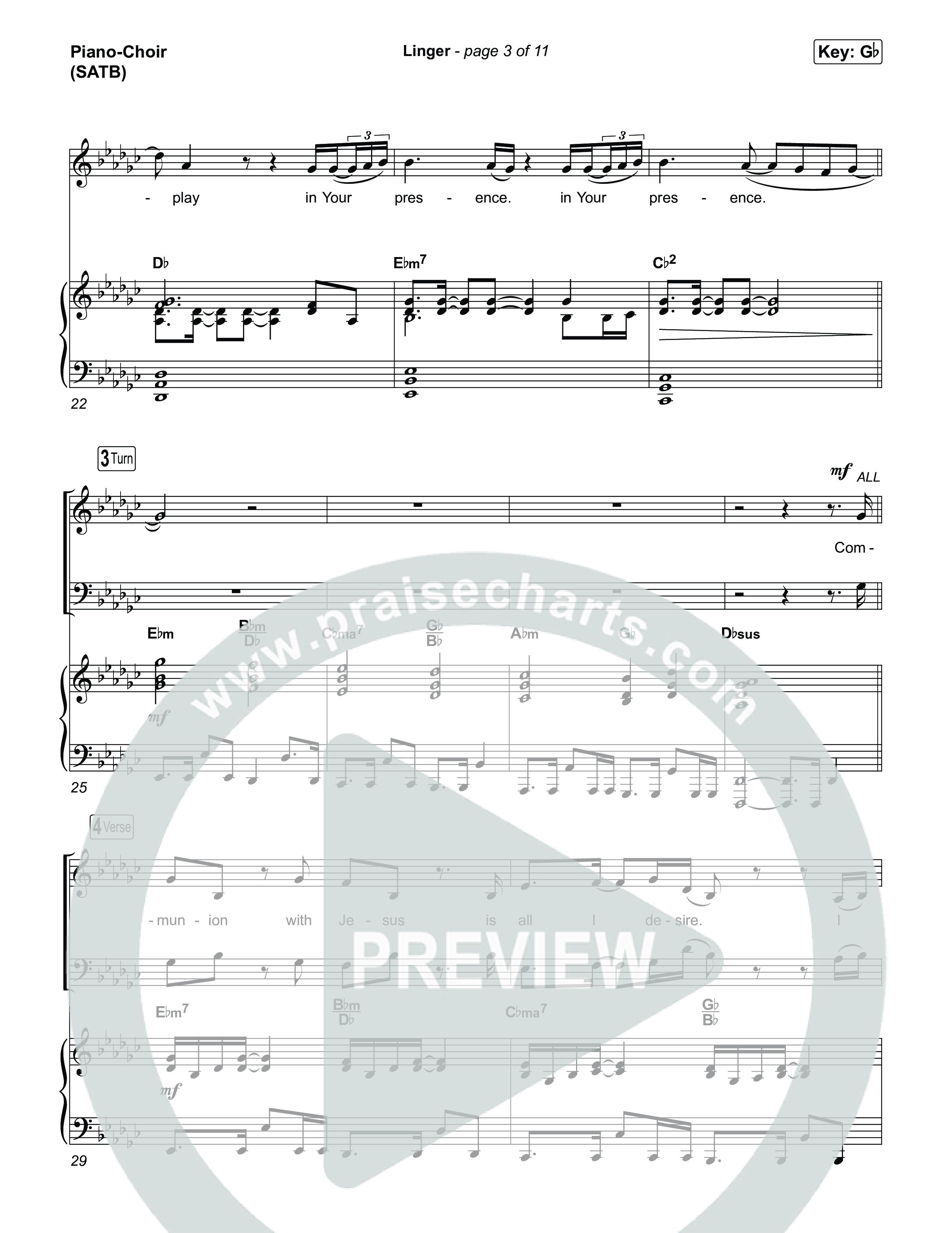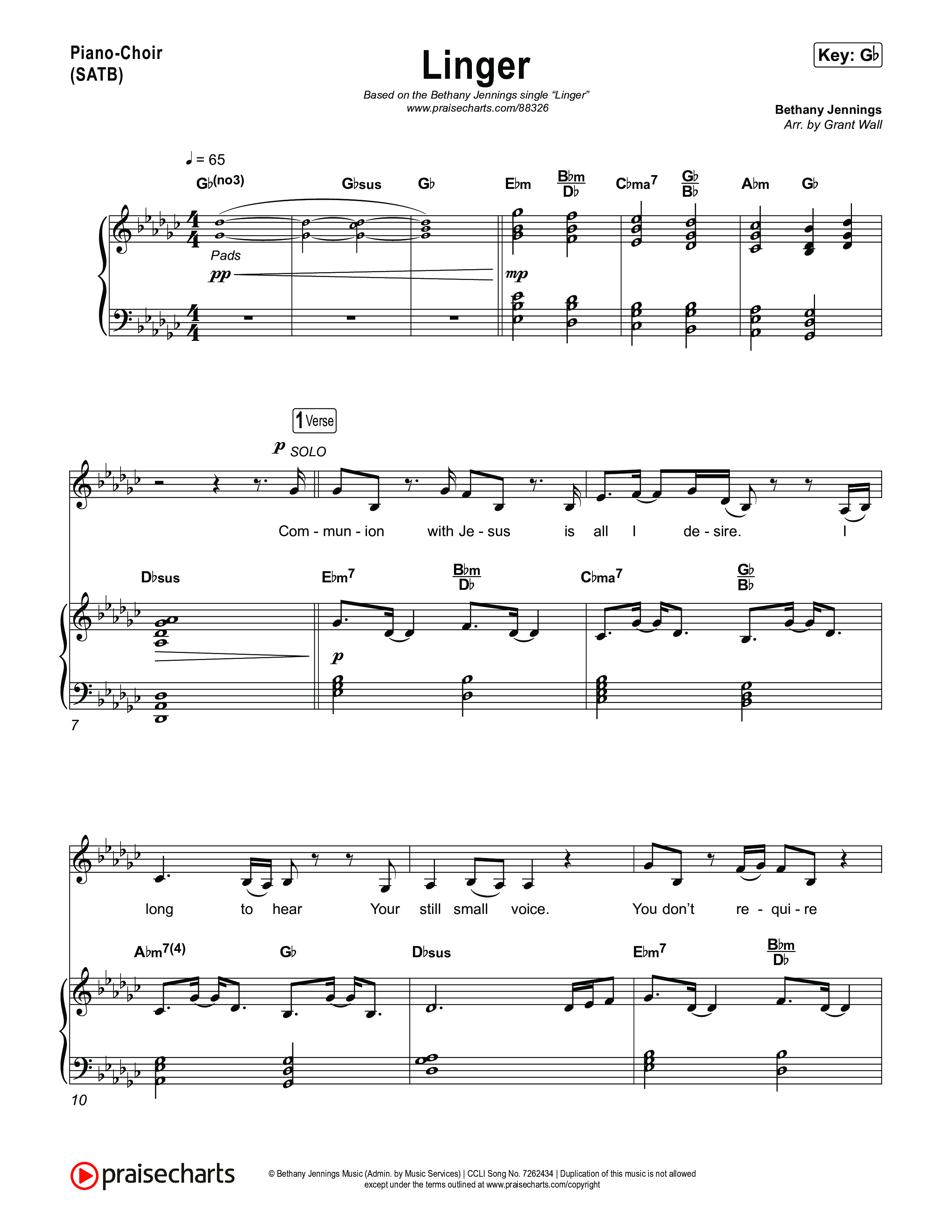 Download the PDF sheet music for Linger by Bethany Jennings, from the album Linger. This song was arranged by Grant Wall in the key of G, Gb.