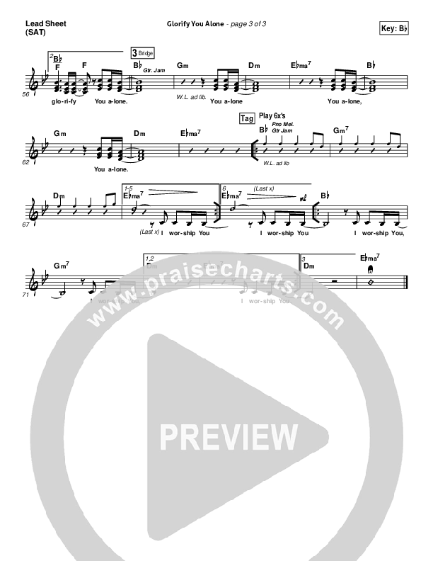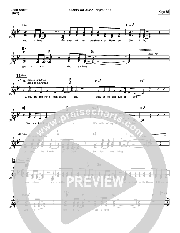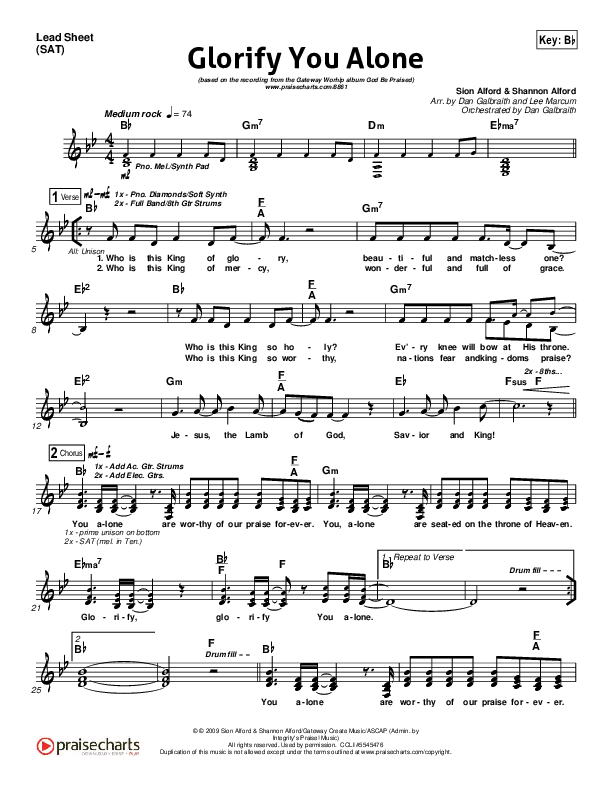 Download the Orchestration for Glorify You Alone by Gateway Worship, from the album God Be Praised. This song was arranged by Daniel Galbraith / Lee Marcum in the key of Bb, C.