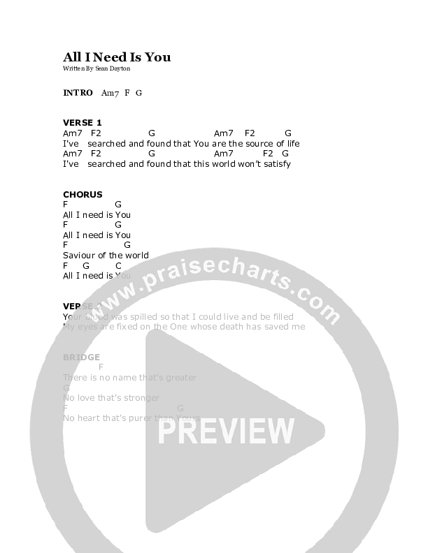 Download the PDF Chord Charts for All I Need Is You by Sean Dayton, from the album Hear The Sound.