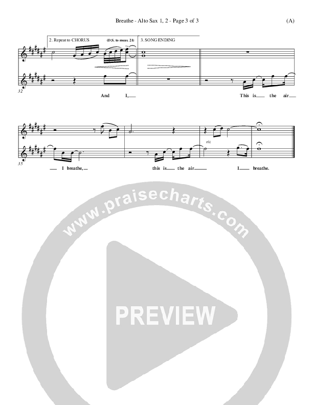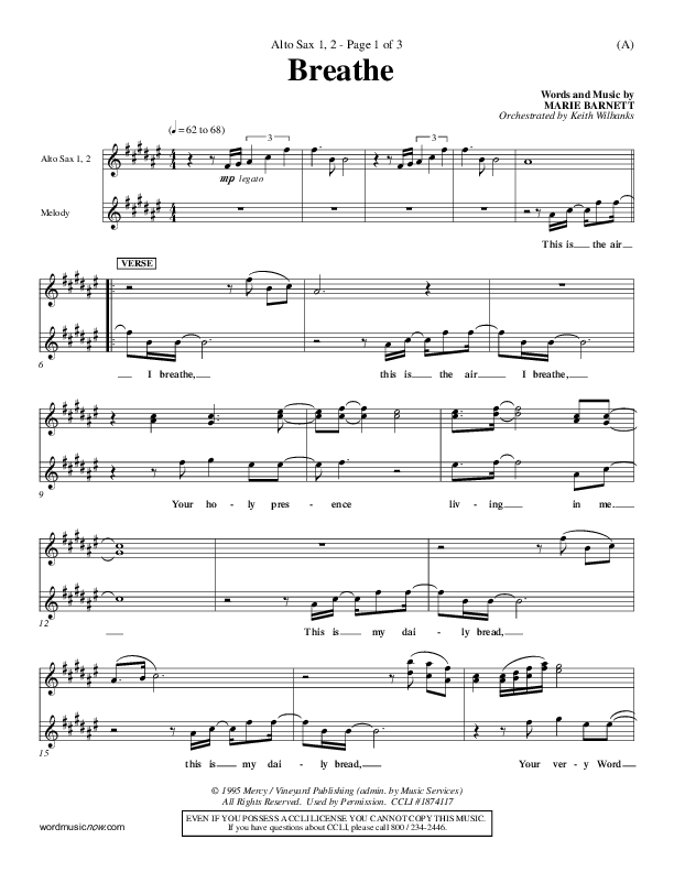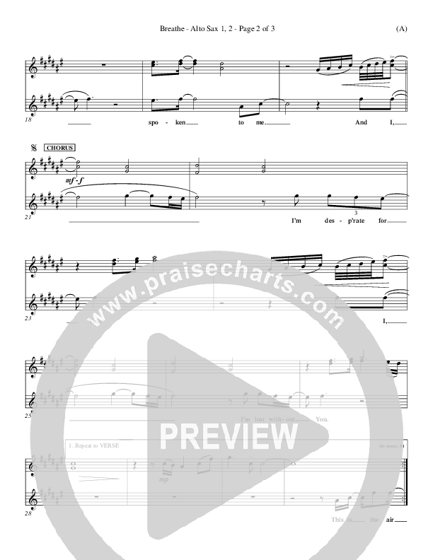 Download the Alto Sax 1,2 sheet music for Breathe by Marie Barnett, from the album Word Music Now.