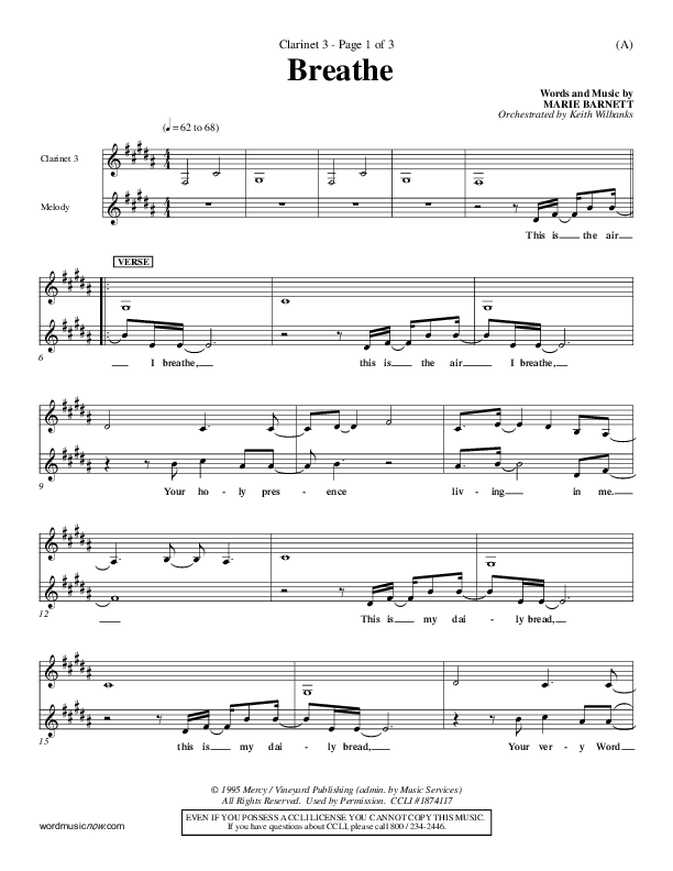Download the Orchestration for Breathe by Marie Barnett, from the album Word Music Now.