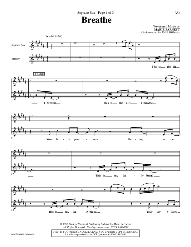 Download the Orchestration for Breathe by Marie Barnett, from the album Word Music Now.