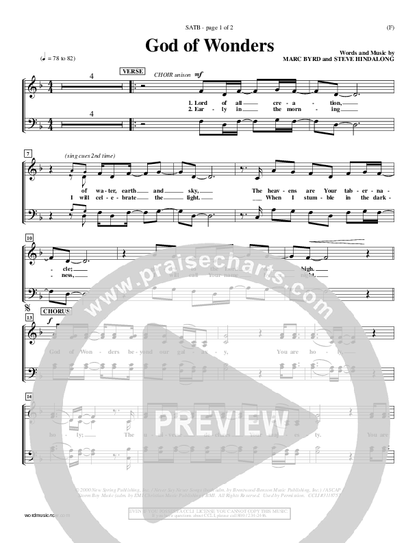 Download the Orchestration for God Of Wonders by Mark Byrd, from the album Word Music Now. This song was arranged by Word Music in the key of F, G.
