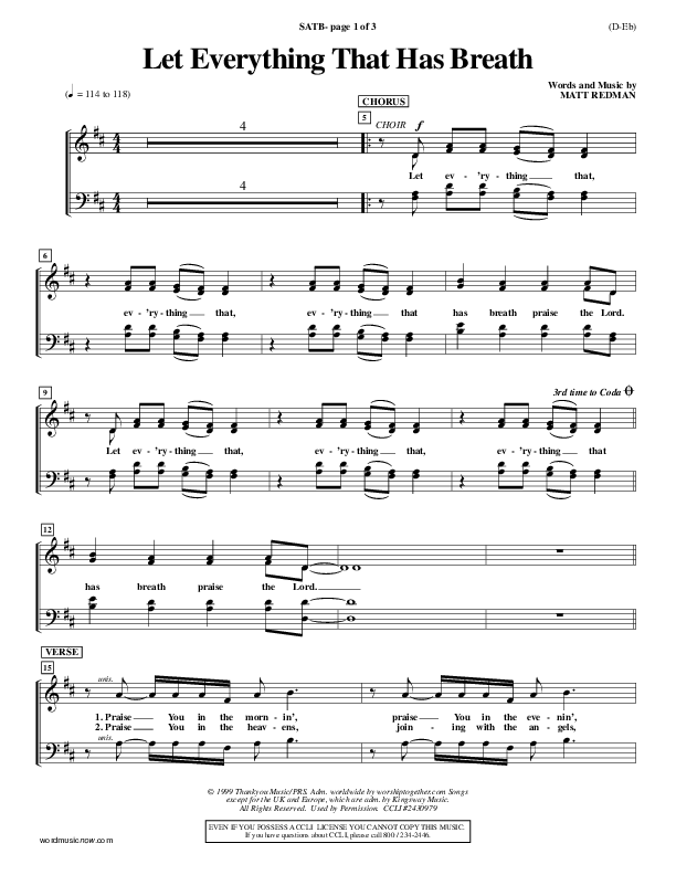 Download the Choir Sheet for Let Everything That Has Breath by Matt Redman, from the album Word Music Now. This song was arranged by Jeff Cranfill in the key of D.