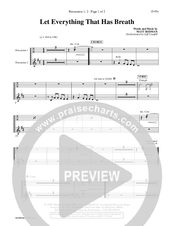 Download the Orchestration for Let Everything That Has Breath by Matt Redman, from the album Word Music Now. This song was arranged by Jeff Cranfill in the key of D.