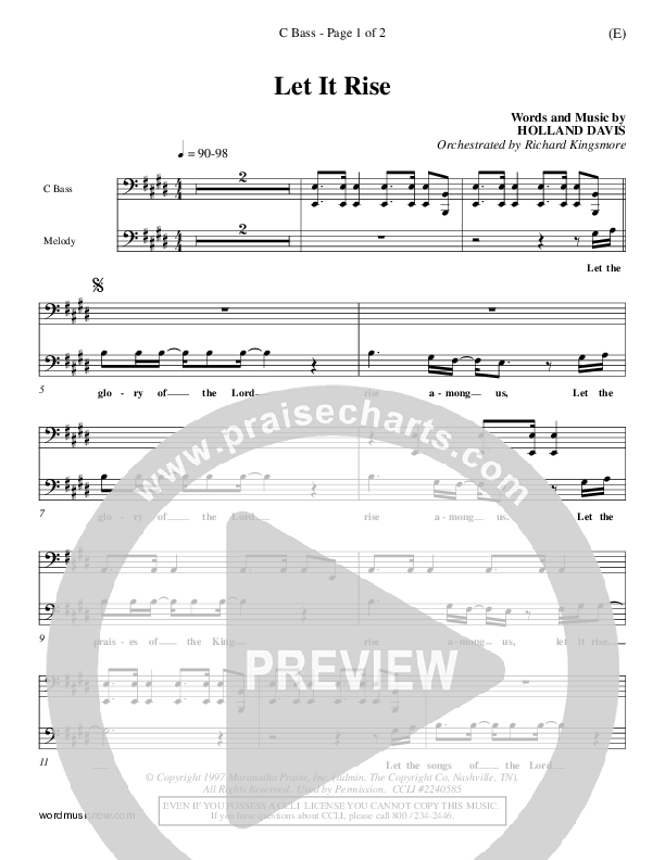 Download the Orchestration for Let It Rise by Holland Davis, from the album Word Music Now.