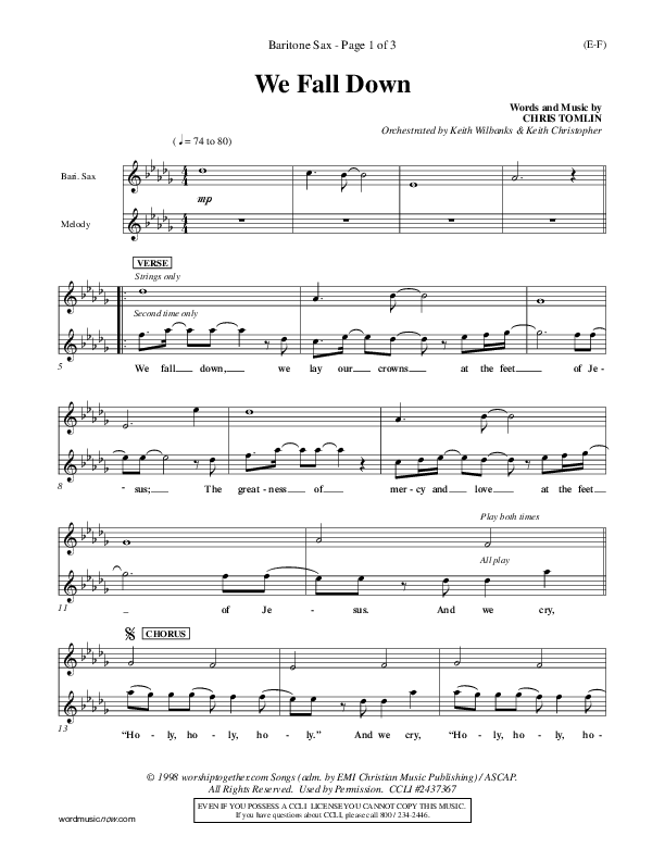 Download the Bari Sax sheet music for We Fall Down by Chris Tomlin, from the album Word Music Now.