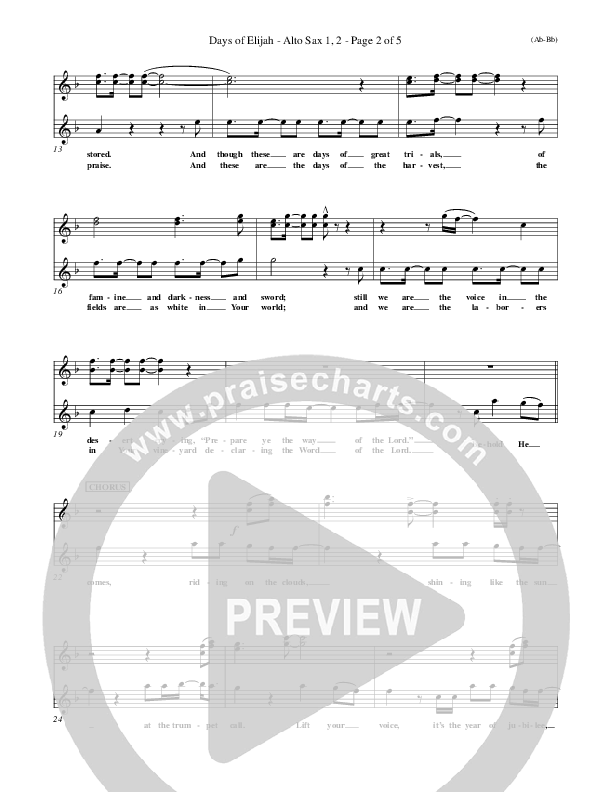 Days of Elijah Alto Sax Sheet Music PDF (Robin Mark)