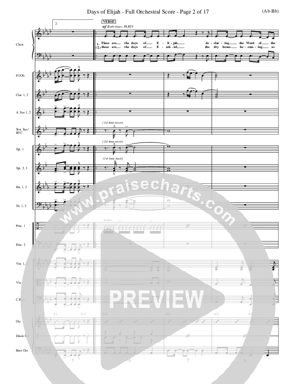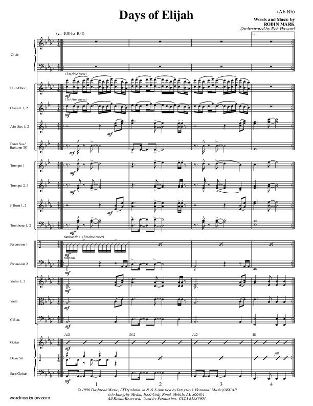 Download the Orchestration for Days of Elijah by Robin Mark, from the album Word Music Now. This song was arranged by Rob Howard in the key of A, Ab.