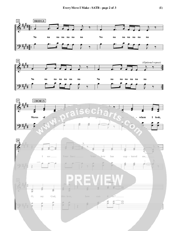 Download the Choir Sheet for Every Move I Make by David Ruis, from the album Word Music Now. This song was arranged by Keith Christopher in the key of E, F.