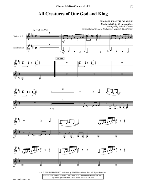St. Francis of AssisiClarinet 1/2, Bass Clarinet Details