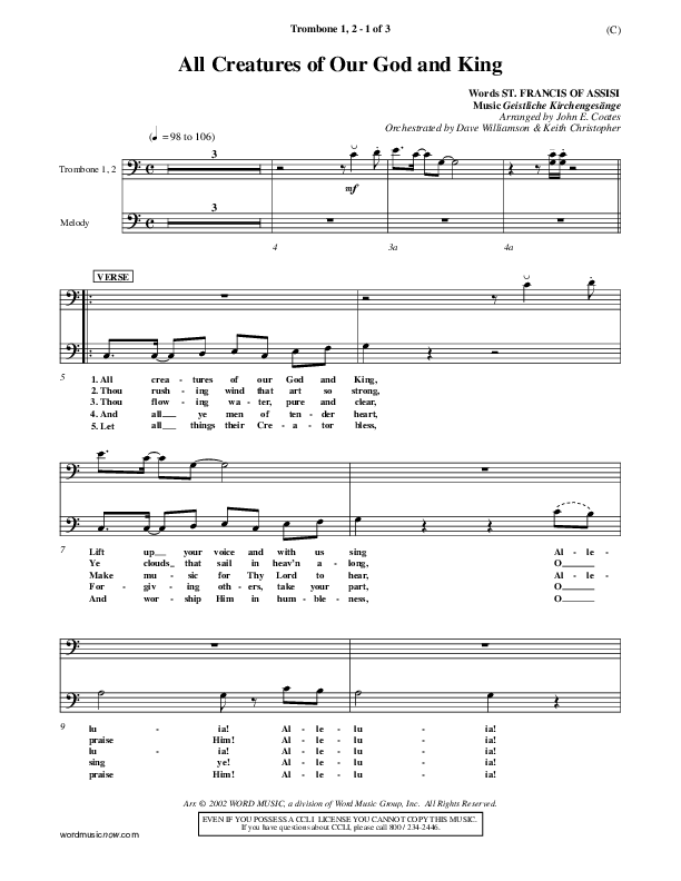 Download the Trombone 1,2 sheet music for All Creatures Of Our God And King by St. Francis of Assisi, from the album Word Music Now.