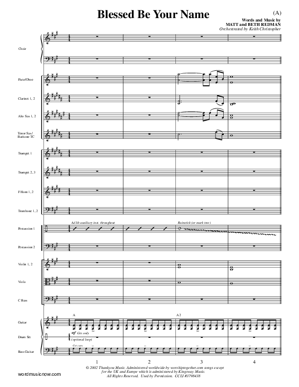 Download the Orchestration for Blessed Be Your Name by Matt Redman, from the album Word Music Now. This song was arranged by Keith Christopher in the key of A, Bb.